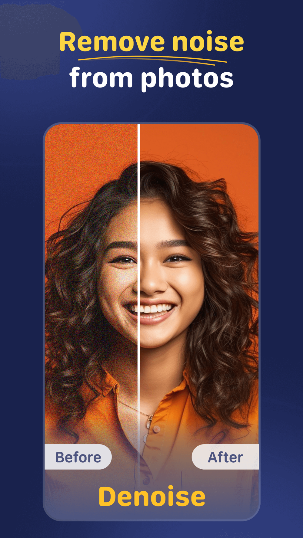 Whether you've taken a photo in low light or your phone's camera has added noise, AI Photo can help you fix it. Our noise reduction tool uses artificial intelligence to remove unwanted noise and grain from your photos, giving them a clean and professional look.