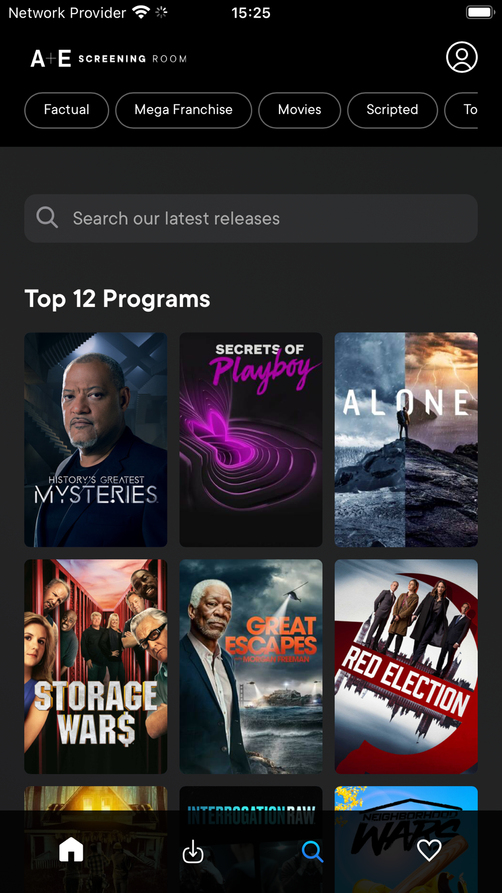 The A+E Screening Room App is created for our global content buyers. This business-to-business app makes it easy to screen our latest and best content while on the go.