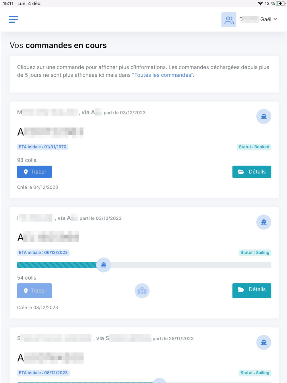 Elle offre un suivi en temps réel des marchandises par bateau, avec des notifications instantanées en cas de retard.