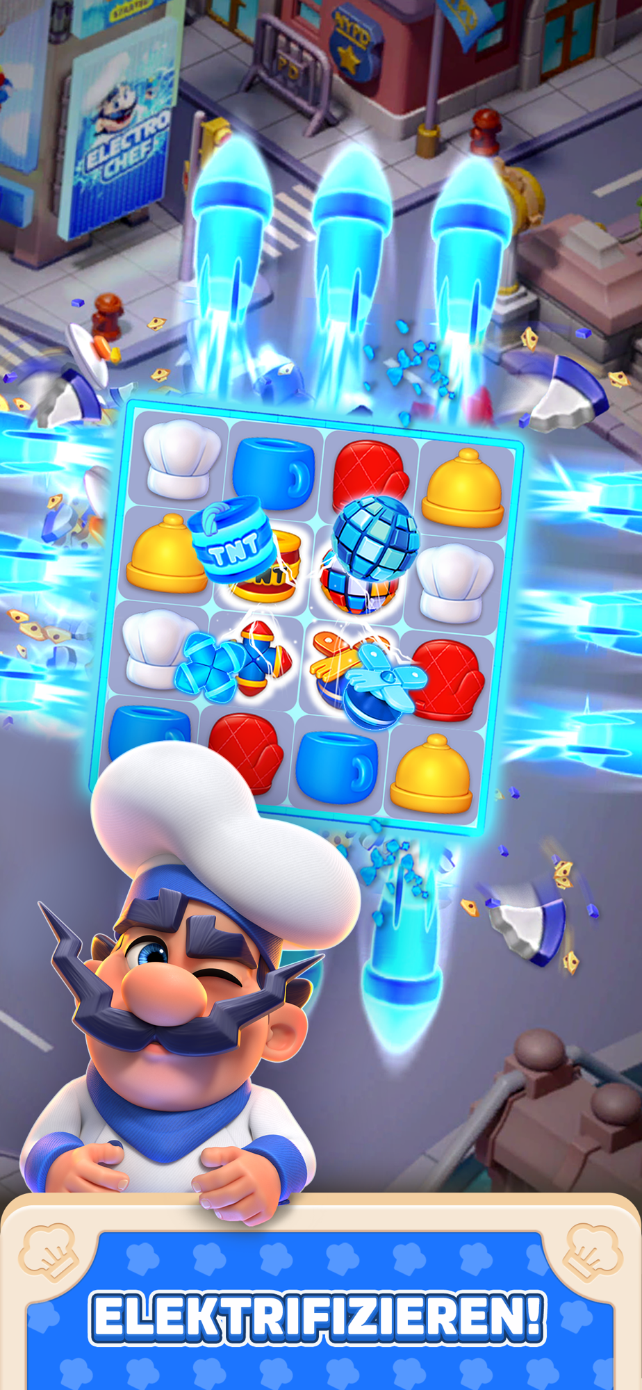 Entdecke das Universum der Kitchen Masters, angeführt vom Meisterkoch und einer talentierten Gruppe von Sous-Chefs. Jeder hat eine einzigartige Besonderheit, von der Präzision des Allesschneiders bis zur feurigen Leidenschaft von Hr. Flammenwerfer. Setze die charakterbezogenen Booster strategisch ein, um jede Herausforderung der Rätsel zu meistern!