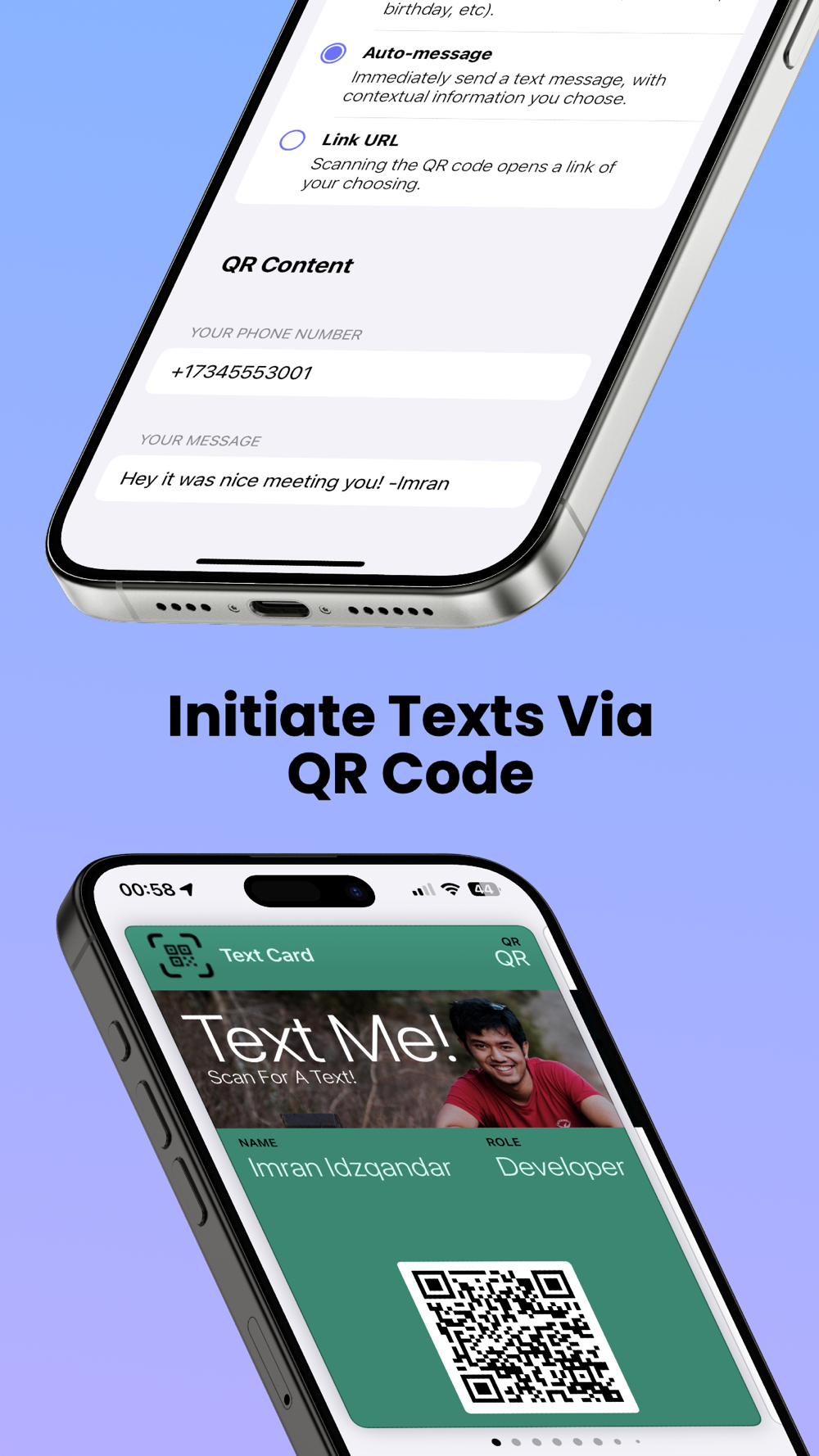 - Auto Text QR: Prompts scanners to text specific message to a pre-defined number
