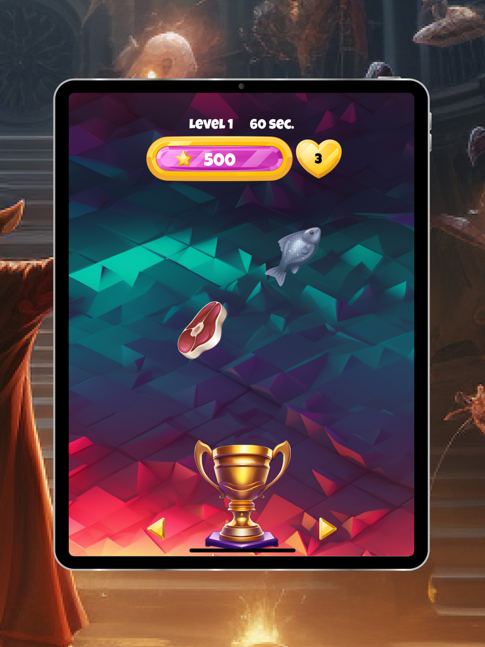 In this game you have to catch useful ingredients (game elements) in order to get ahead in the game world, as well as get on the leaderboard and take honorable first place.