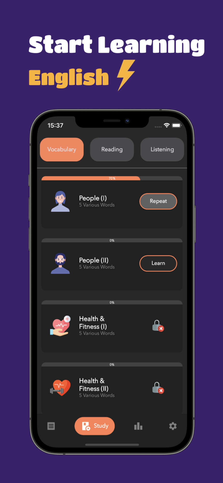Watch your vocabulary blossom across various themes and subjects. With intelligent repetition and personalized challenges, you'll retain what you learn and feel confident in your ability to express yourself in English.