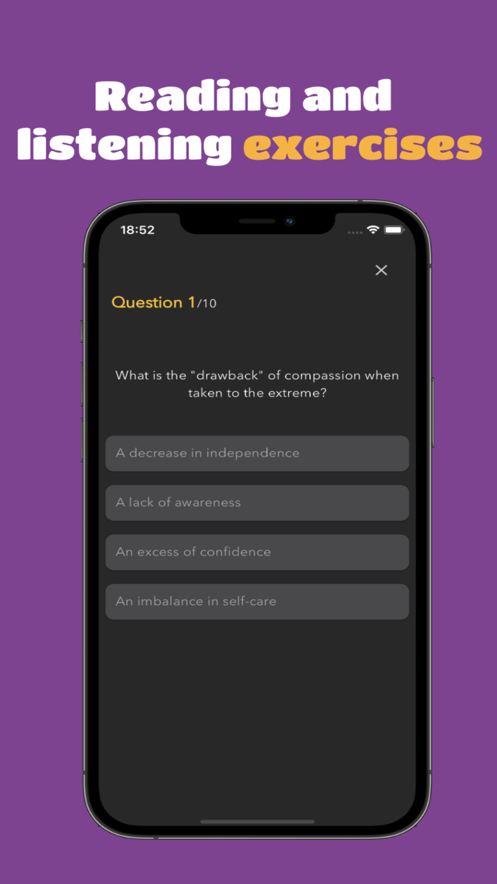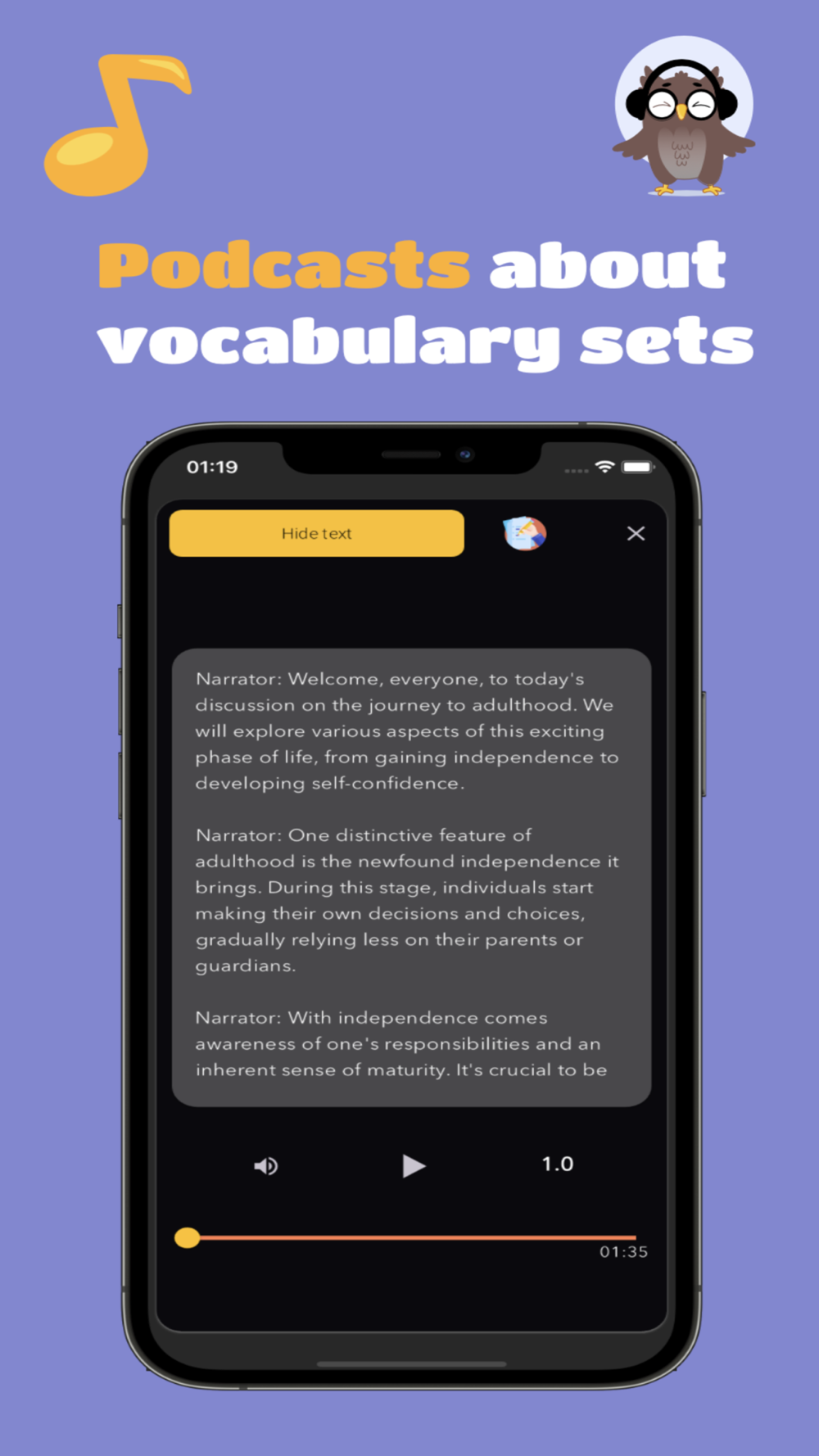 Our interactive exercises ensure active reading and listening and provide immediate feedback, making every minute count. Transform your reading and listening moments into learning opportunities and open your ears to a world of English.