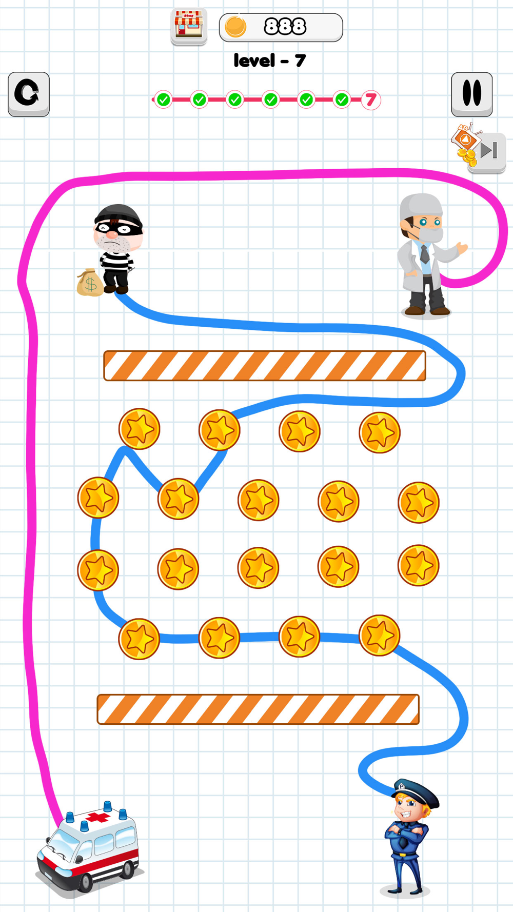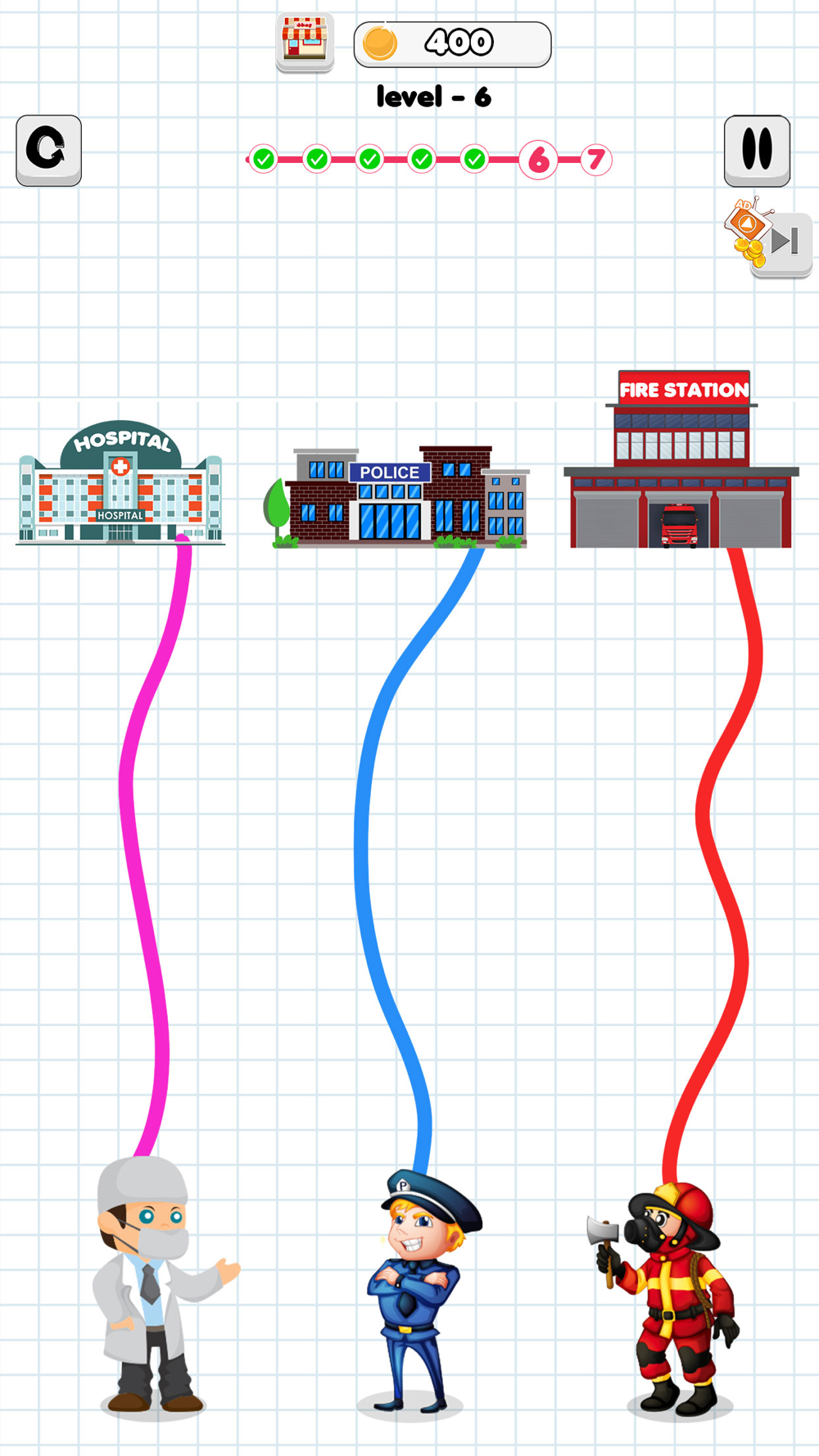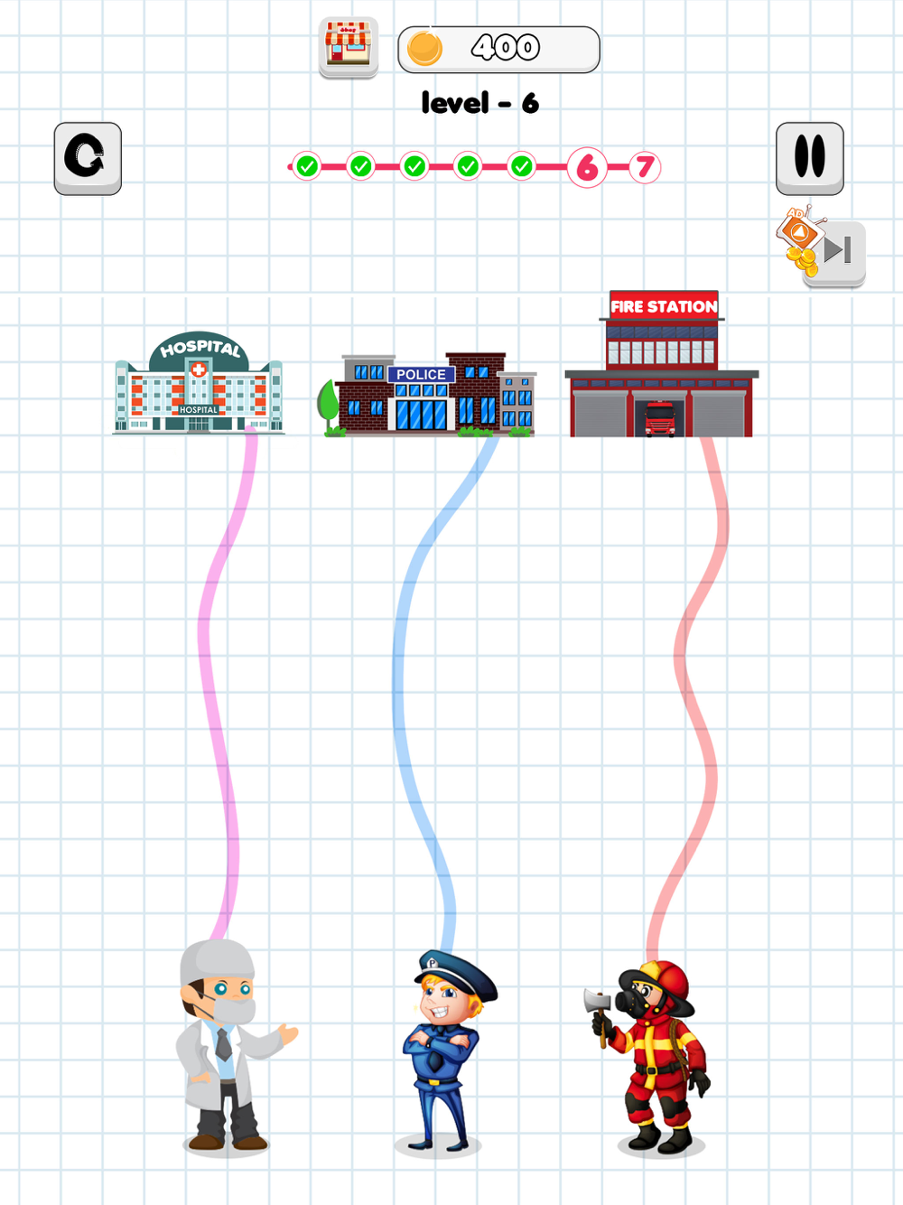 Connect the policeman, firefighter, and doctor to their vehicles. Please help them to reach an emergency in this challenging puzzle game. Relax with fun puzzles it is a very interesting game about drawing the line and helping the emergency crew find the right vehicles. Explore more challenging levels, as you progress in the game the puzzle will keep getting more and more tough to solve.