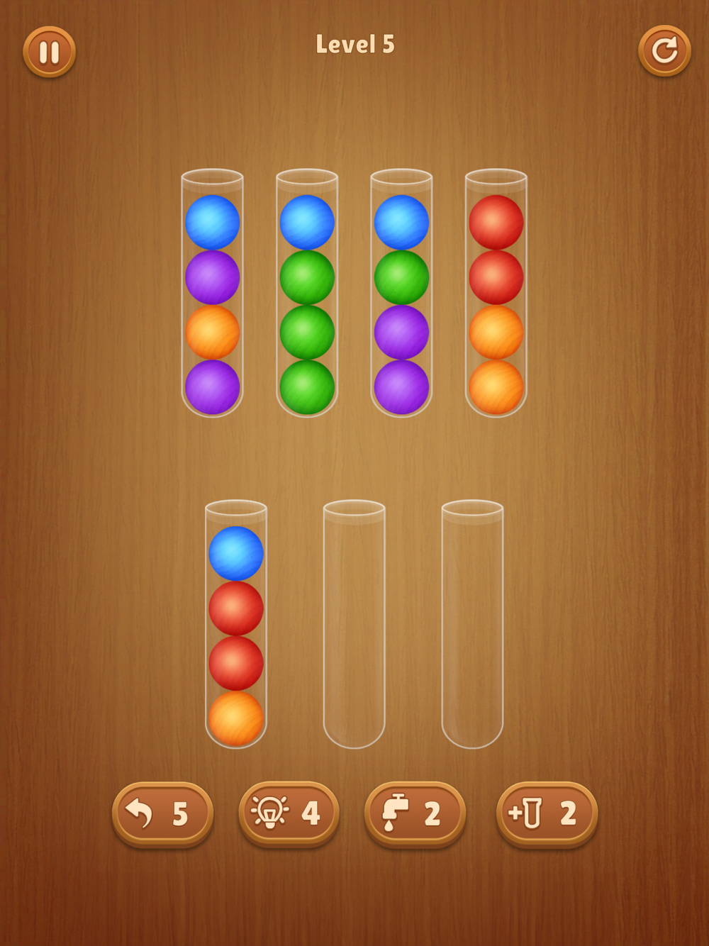 Color Ball Sort Woody Puzzle is a free time killer game. Gameplay is very simple: just tap the tube to sort all the same color balls into the tubes. The winning condition of the game is that the balls of the same color are placed in the same tube. A challenging yet relaxing game to exercise your brain!