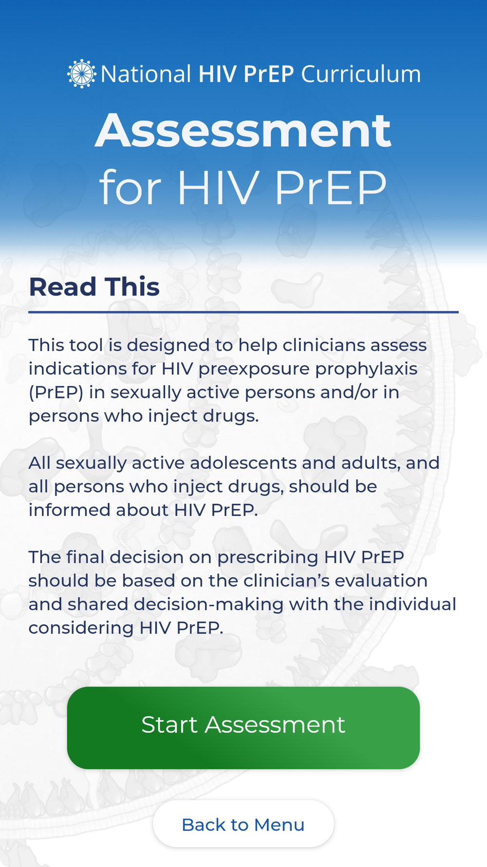 The interactive HIV PrEP Tools for Clinicians application was developed for the free National HIV PrEP Curriculum by the University of Washington Infectious Diseases Education & Assessment (IDEA) Program. These free tools are based on the Centers for Disease Control and Prevention (CDC) Preexposure Prophylaxis for the Prevention of HIV Infection in the United States (2021 Update) – A Clinical Practice Guideline.
