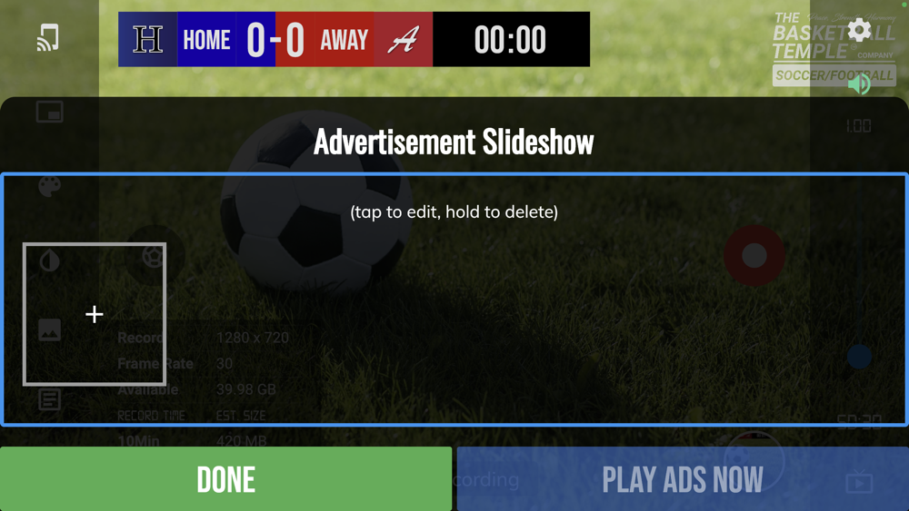 - Add advertisements to display during pregame, timeouts, and rest periods