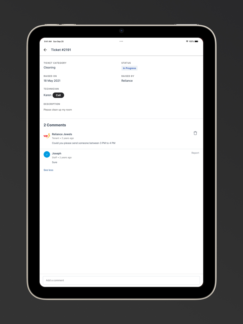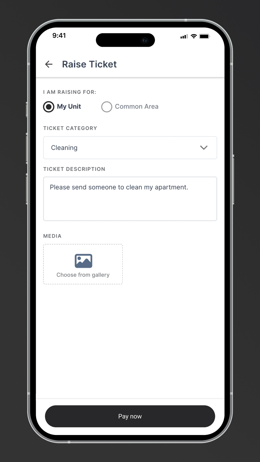 3. Hassle-Free Ticketing: Have a specific request or concern? Raise tickets through the app to ensure your queries are tracked and managed with complete visibility. We're here to address your needs promptly and provide exceptional support.