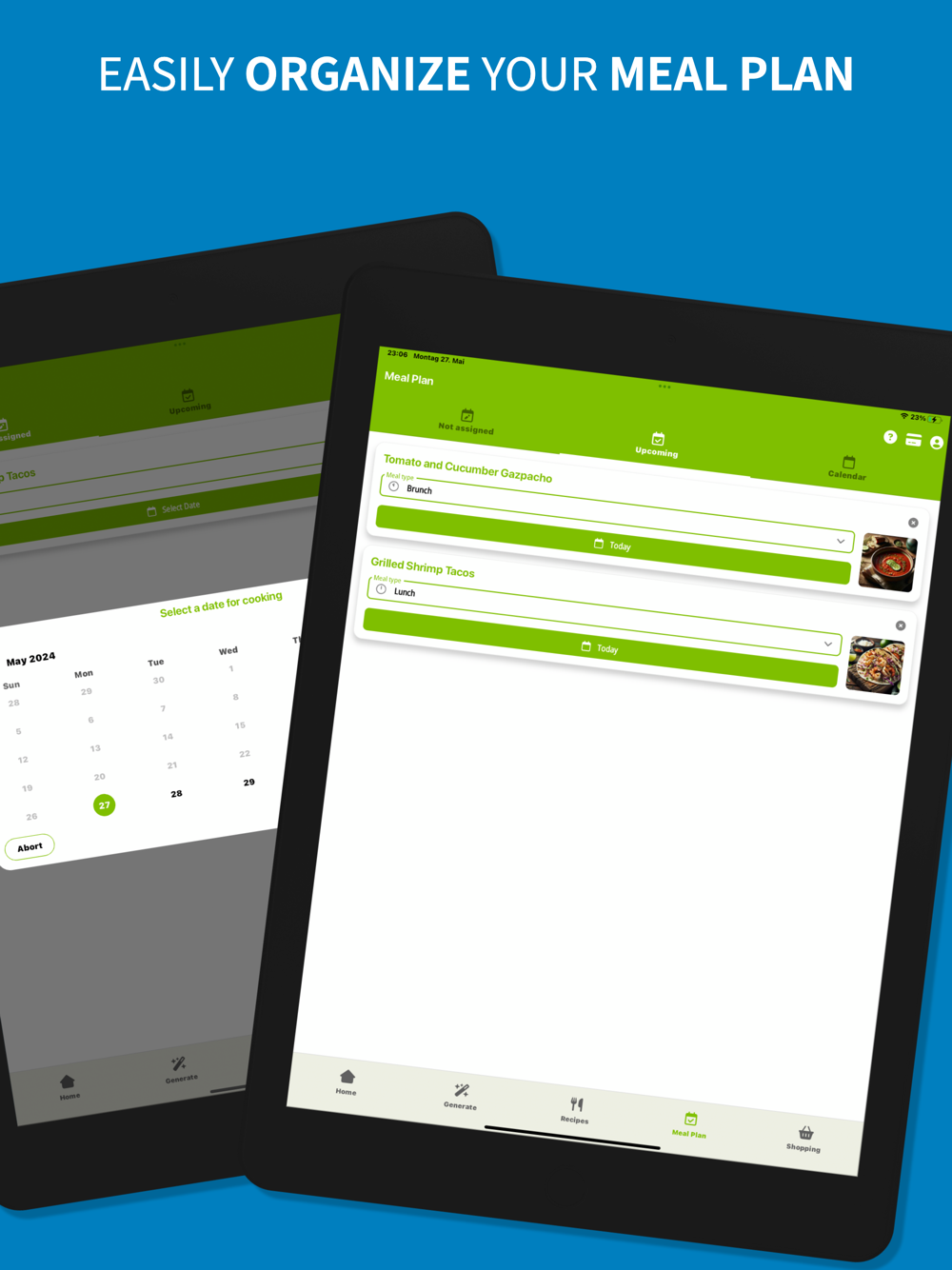 Enregistrez, triez et recherchez vos recettes préférées avec facilité. Planifiez vos repas grâce à notre fonctionnalité Plan de Repas, avec un calendrier de cuisine pour organiser votre semaine culinaire.