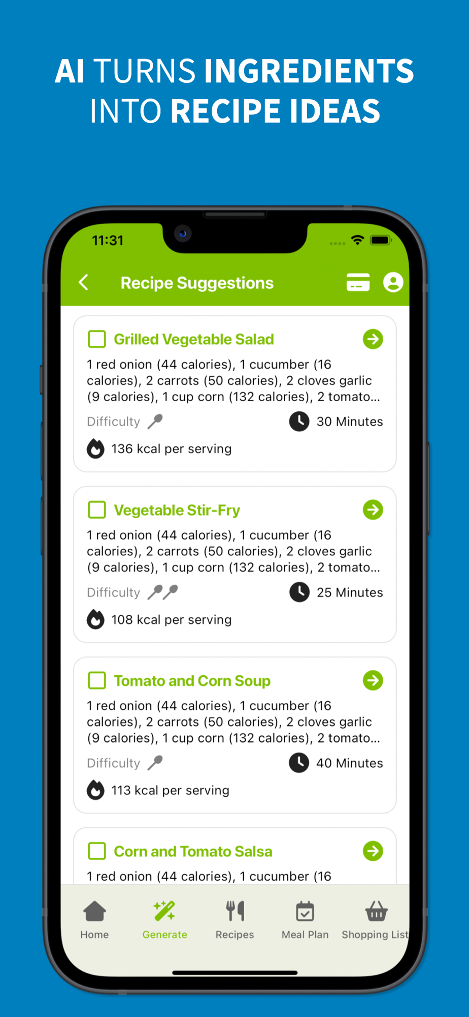 AI-Chef adapte chaque fonctionnalité – des suggestions de recettes aux listes de courses – à vos goûts individuels, garantissant que chaque expérience culinaire soit unique.