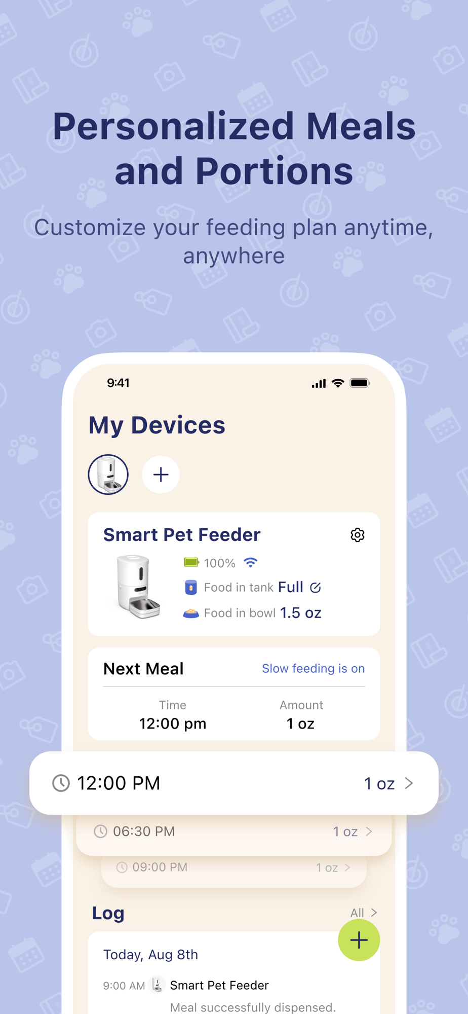 Remotely feed your pet anytime, anywhere. Customize their feeding schedules and monitor their meals in real-time. Our app is a must-have for pet owners because it allows you to make sure your furry friends are well taken care of.