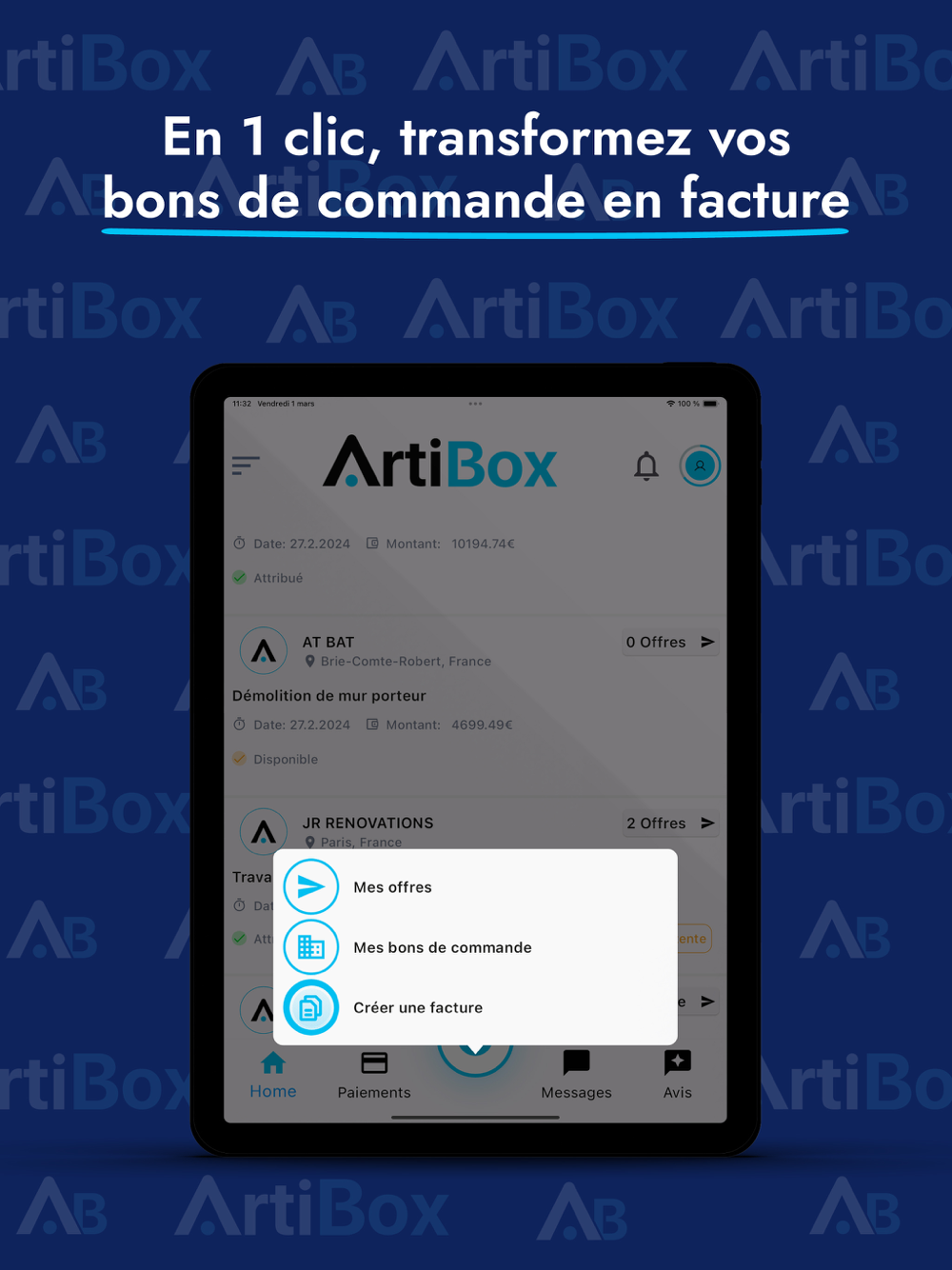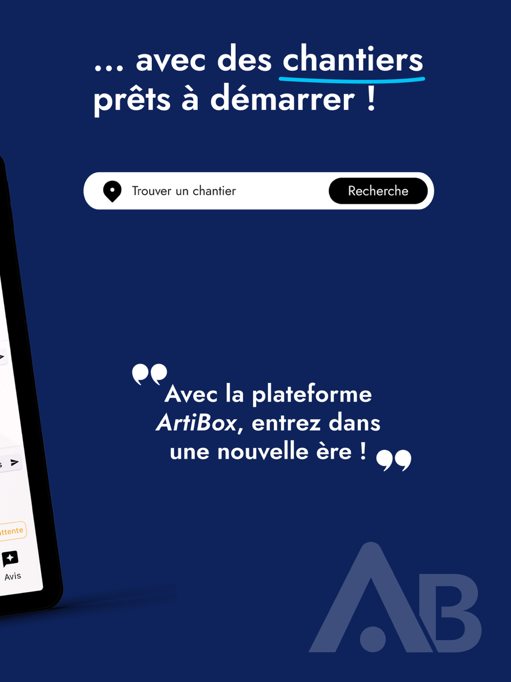Chaque professionnel du bâtiment sait à quel point le temps est précieux. La chasse aux chantiers, les devis, les négociations – chacune de ces étapes peut être longue et coûteuse, sans garantie de résultat. ArtiBox est né de cette réalité, avec une promesse simple : optimiser votre temps et vos efforts. Rejoignez ArtiBox et découvrez une nouvelle manière de travailler, où chaque clic est une opportunité supplémentaire de développer votre chiffre d’affaires.