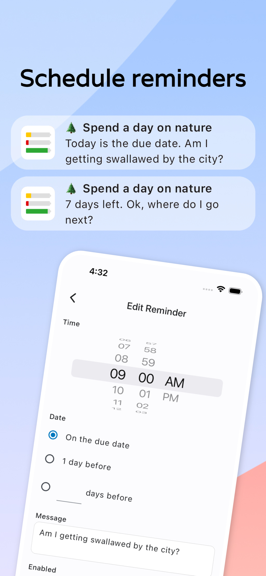 Download "99 Reminders" now and take a first step towards a more organized, disciplined, and serene lifestyle. Reclaim your time, manage your tasks, and unlock a new level of productivity and personal accountability.