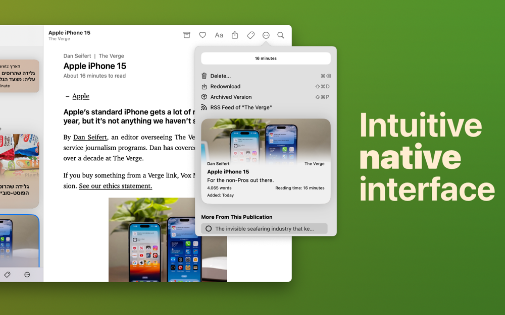 Flyleaf is a “read-later” app that displays saved articles from the web in a meticulously designed reading view, without popups, ads or other distractions.