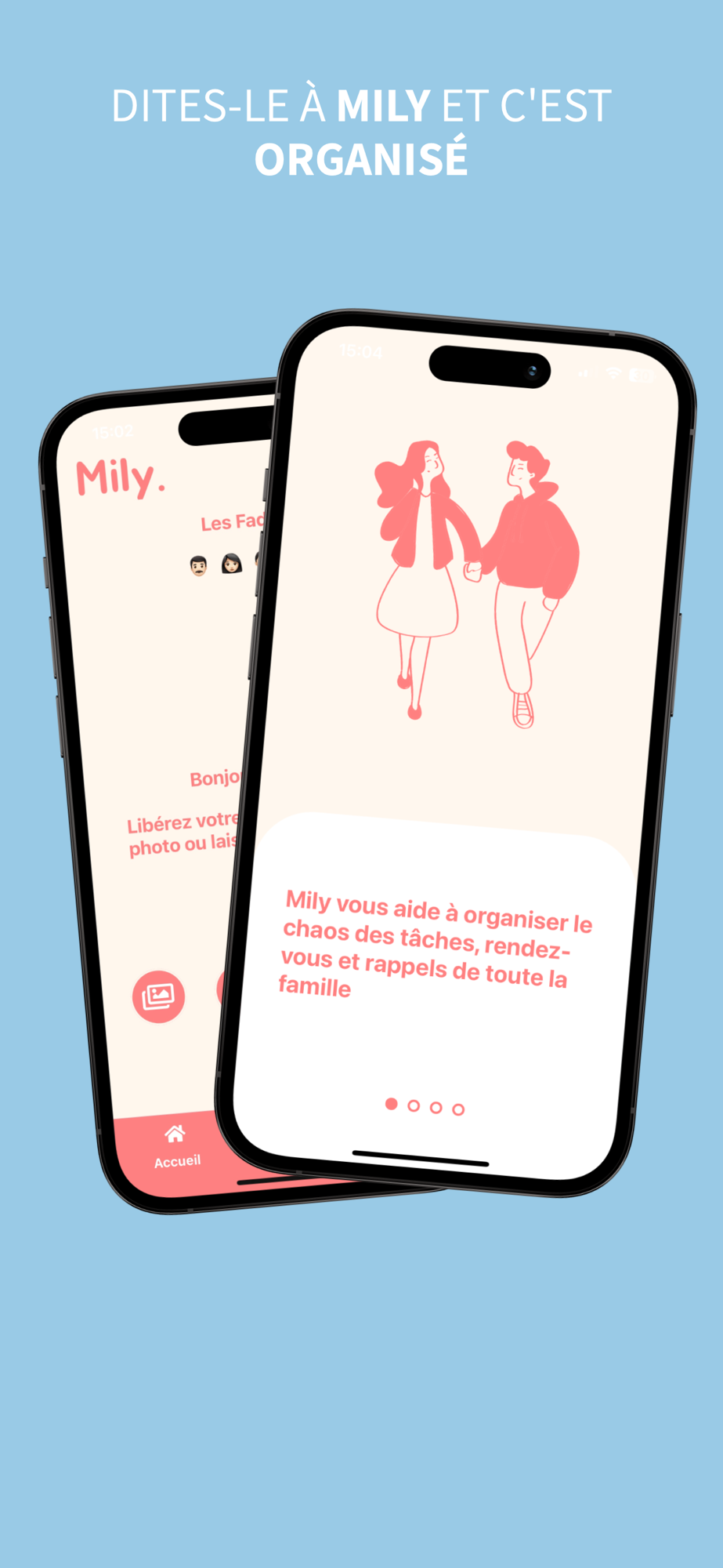 Rejoignez l'aventure Mily : Combattez la charge mentale et la logistique familiale avec Mily. Inscrivez-vous dès maintenant pour simplifier votre vie de famille et redécouvrir le plaisir d'être ensemble, sans le stress des tâches quotidiennes.