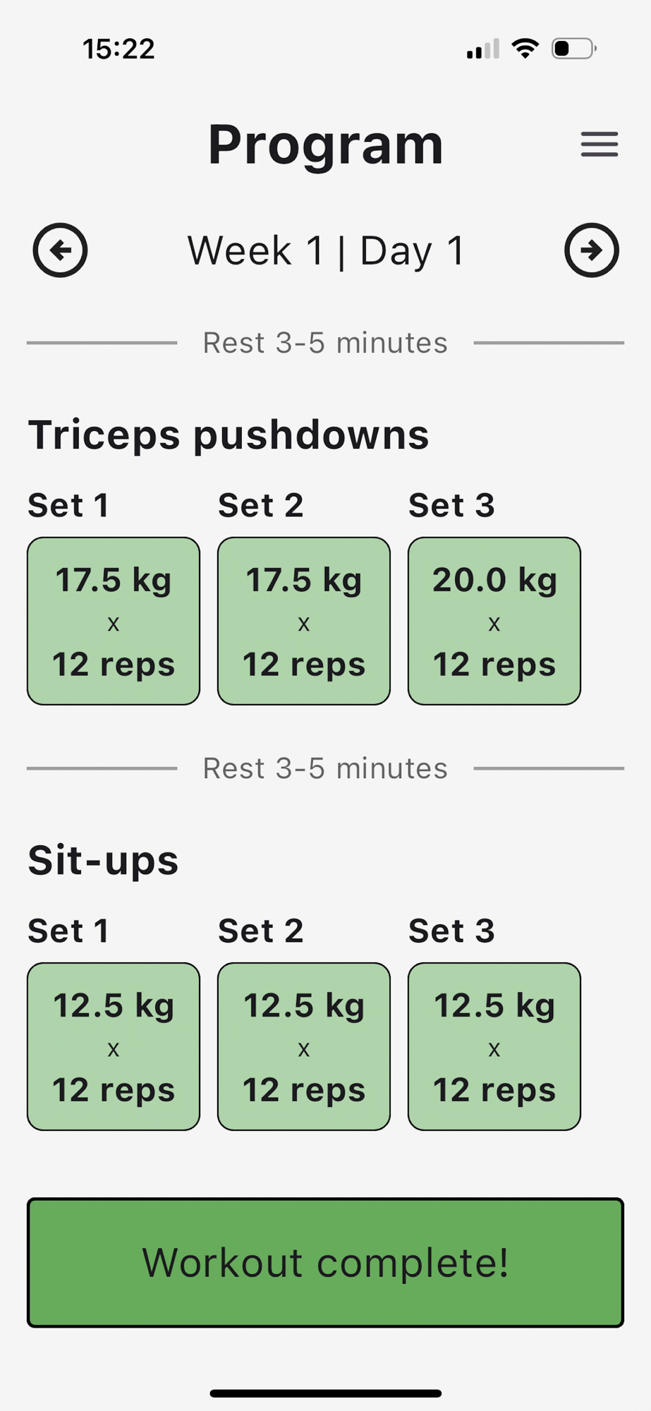 This app provides you with a full-body training program that requires you to work out 3 times a week for 6 weeks.