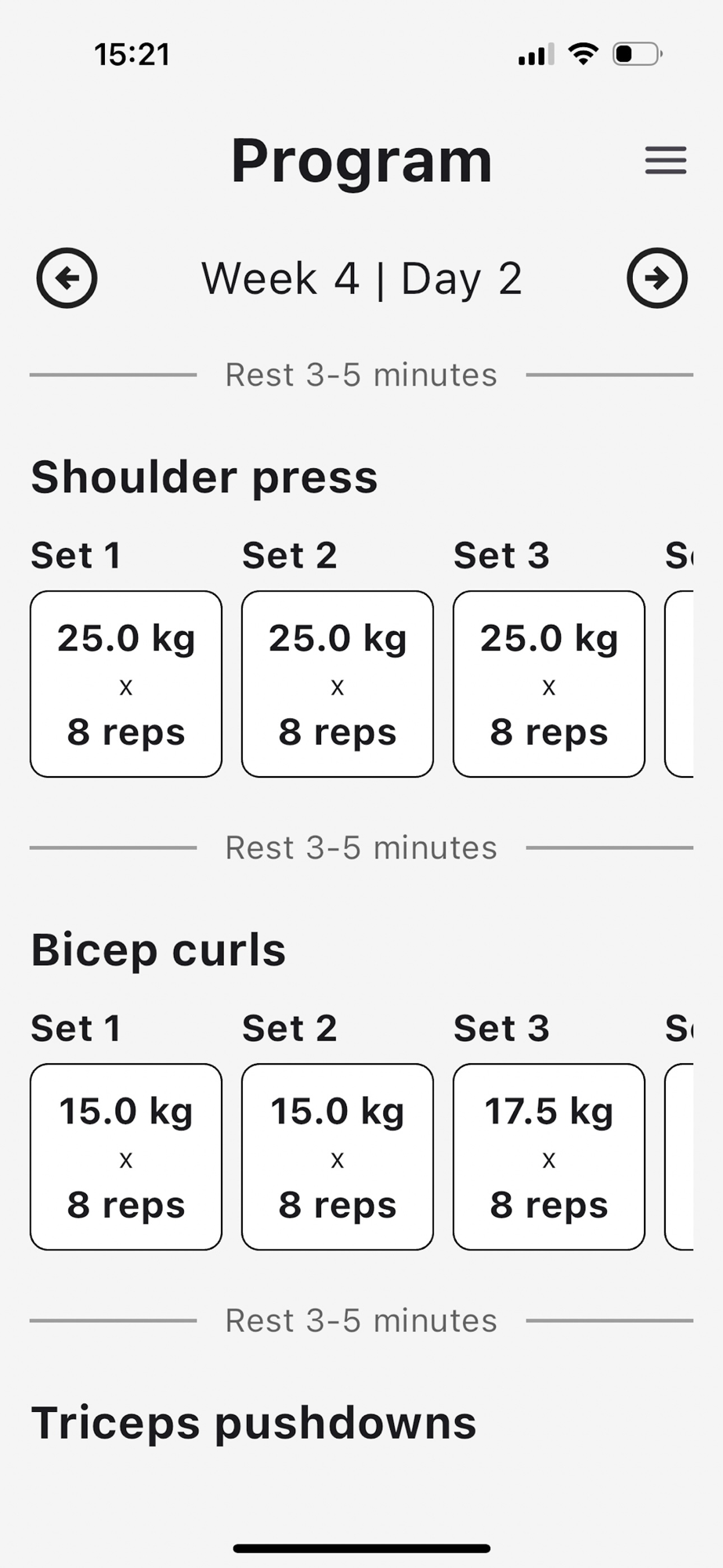 It will automatically calculate the exact weight you should lift for each set based on your strength.