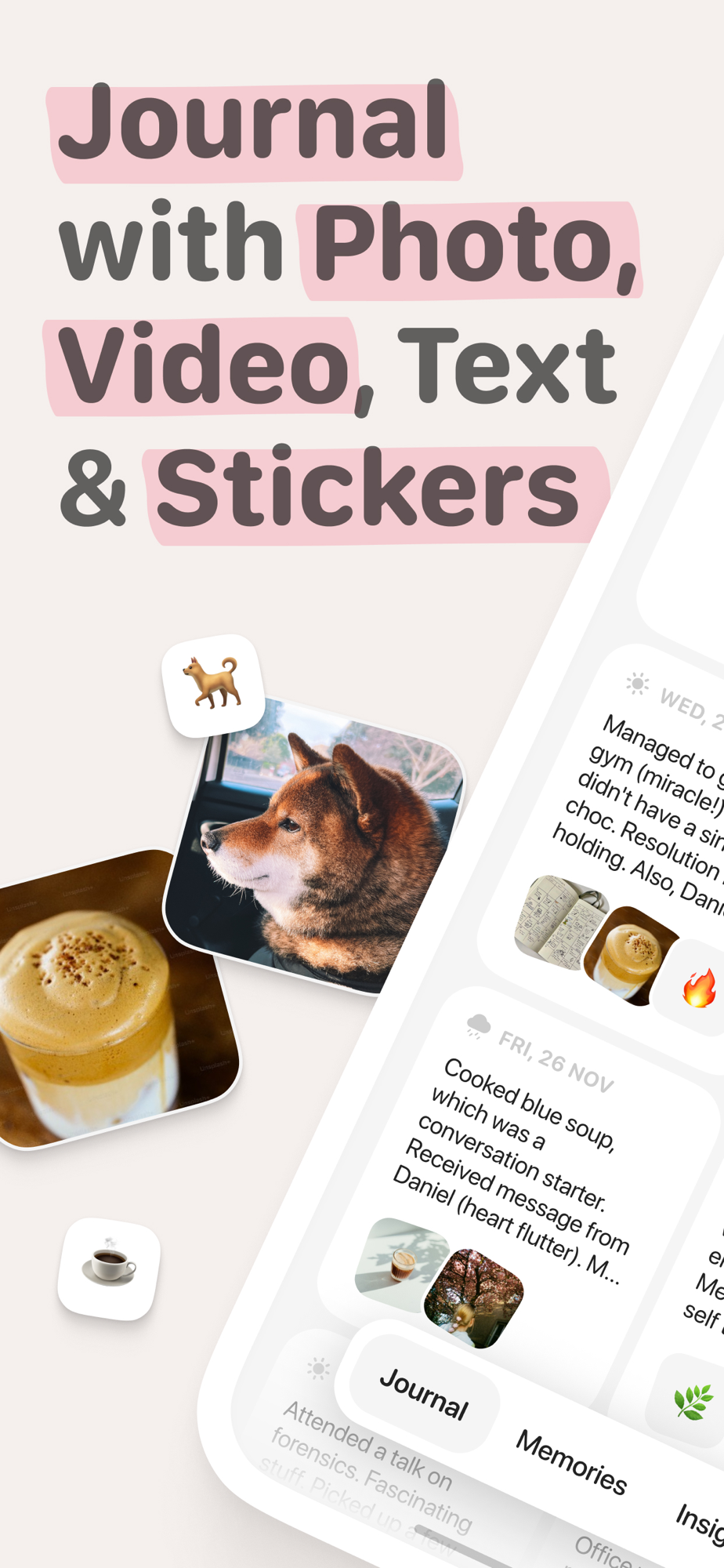 Days is a simple and elegant journaling app for capturing your daily memories with text, photo, video and stickers.