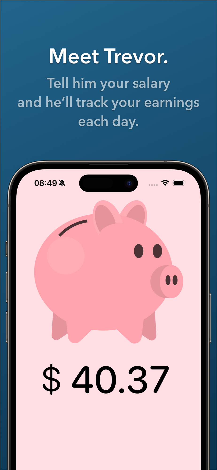 Meet Trevor, the salary-tracking piggybank. Just tell him your salary and he'll show a counter of how much you've earned each day.