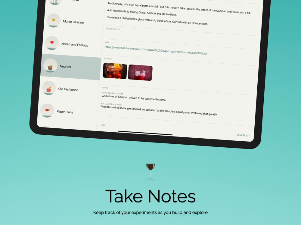 • **Multimedia Integration:** Enhance your cocktail experience by adding links to your favorite instructional videos. Learn new techniques from expert bartenders to elevate your craft.