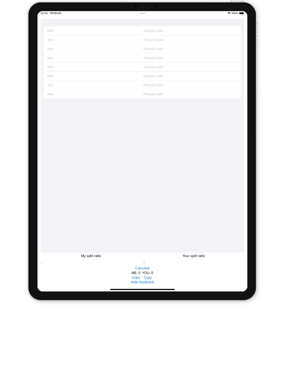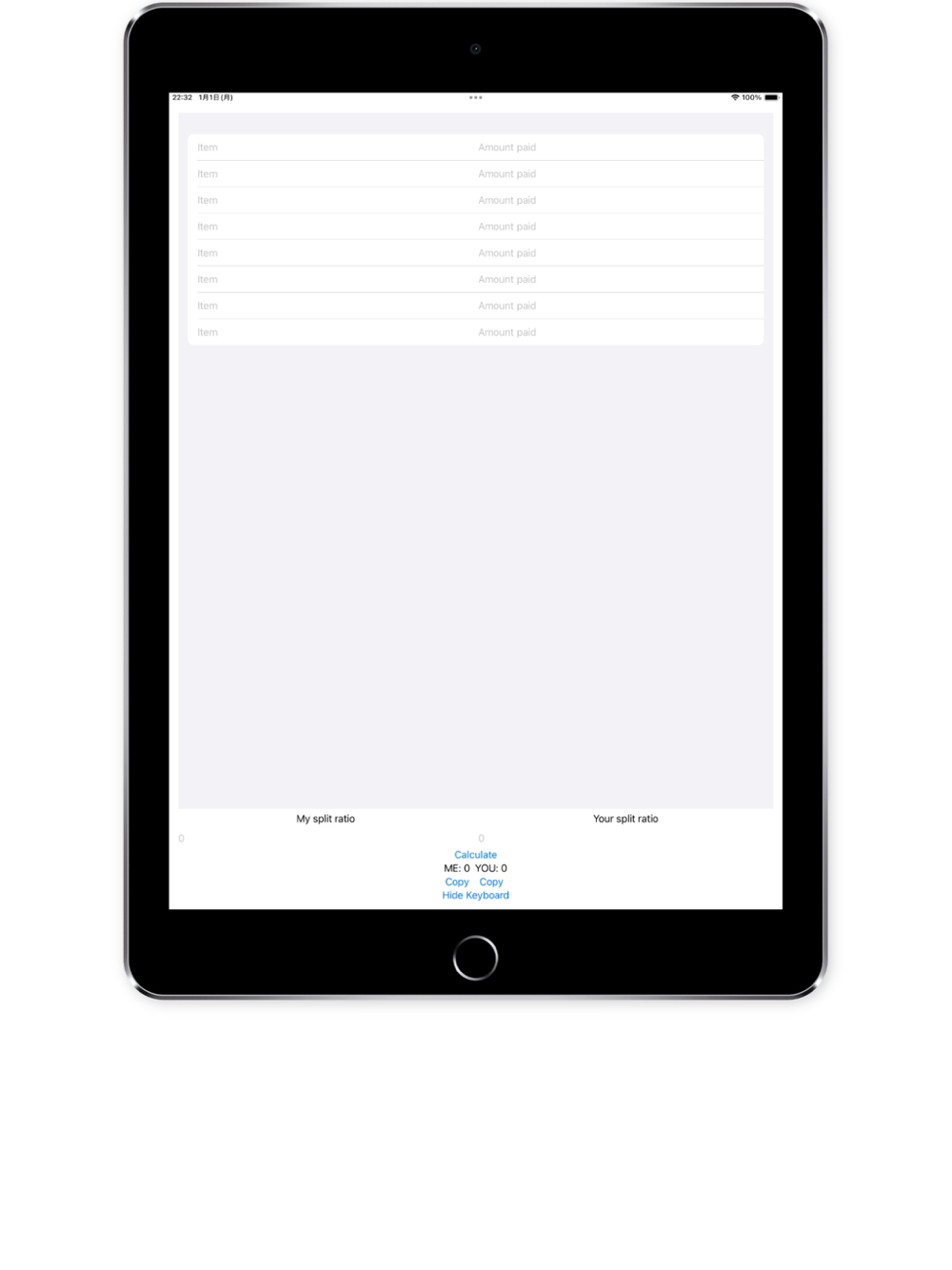 This is a calculator application used when splitting the bill among friends, couples, or family members. After setting what percentage each person is responsible for, it calculates the amount each person should pay.