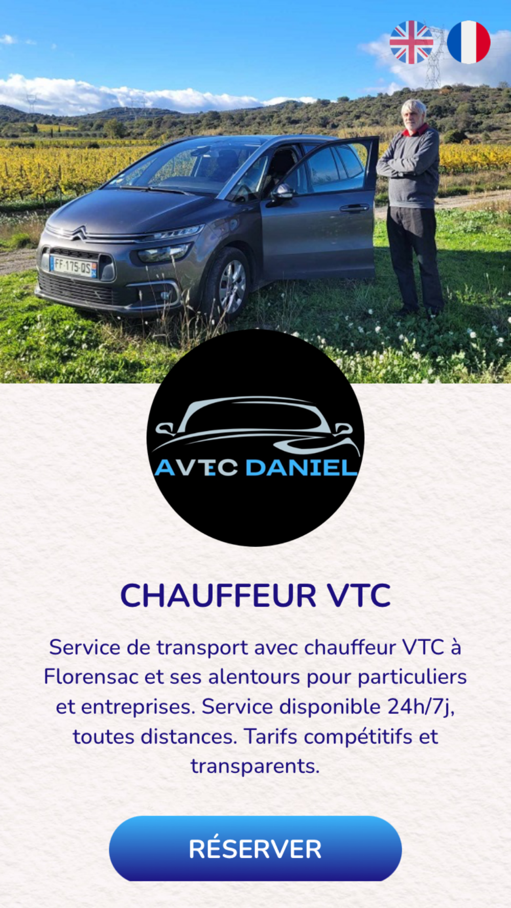 VTCAVECDANIEL est une application qui permet de réserver une voiture de tourisme avec chauffeur (VTC) pour toutes destination dans le sud de la France.