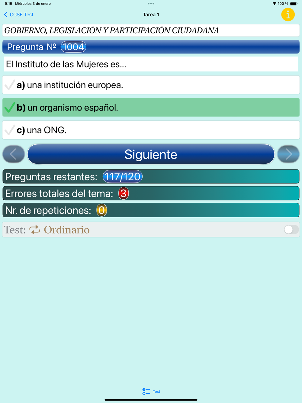 Eso sí, para superar la prueba y aprobarla es necesario responder correctamente un mínimo de 15 las 25 preguntas. Es decir, un 60% de las preguntas totales. De esta forma, podrás aprobar.