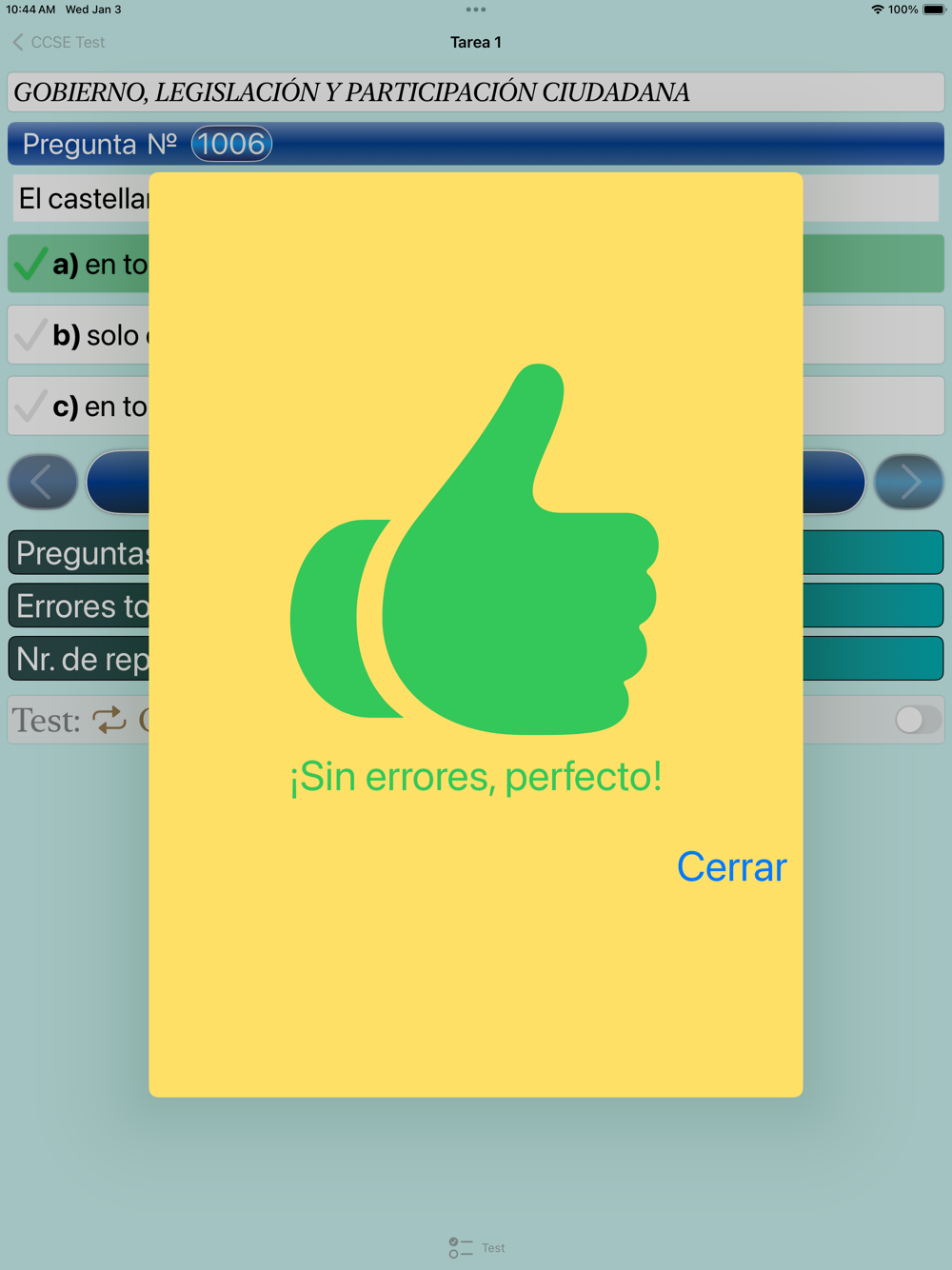 Esta aplicación no está relacionada con la aplicación oficial del Instituto Cervantes. Utilizamos únicamente el cuestionario oficial del Instituto Cervantes.