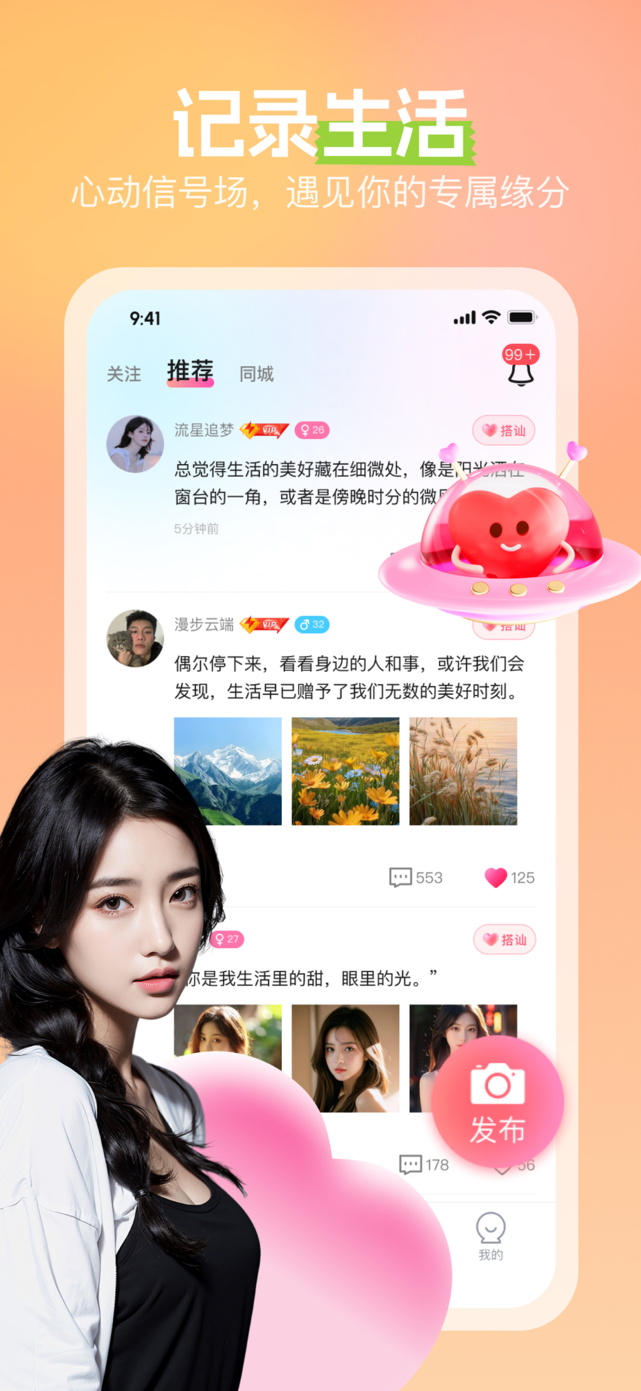 陌友探聊交友约会,汇集单身男女在线聊天、交友、约会、恋爱,在这你可以和陌生人聊天,恋爱交友,匹配约会,体验别样互动模式,告别闲聊尬聊,在有趣的聊天中遇见心动的她。