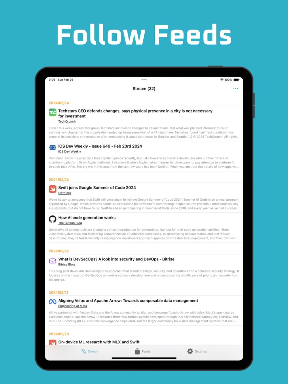 A streamlined RSS reader app that brings your favorite news and blogs to your fingertips with elegance and ease.