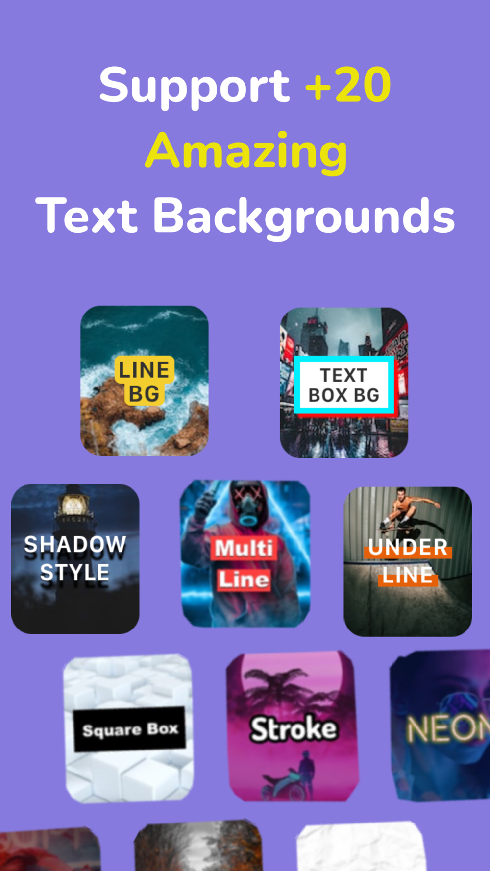 • Text Effects: Customize your texts with 6 types of shadow, over 20 text colors, and multiple background effects including brush and dialogue box.