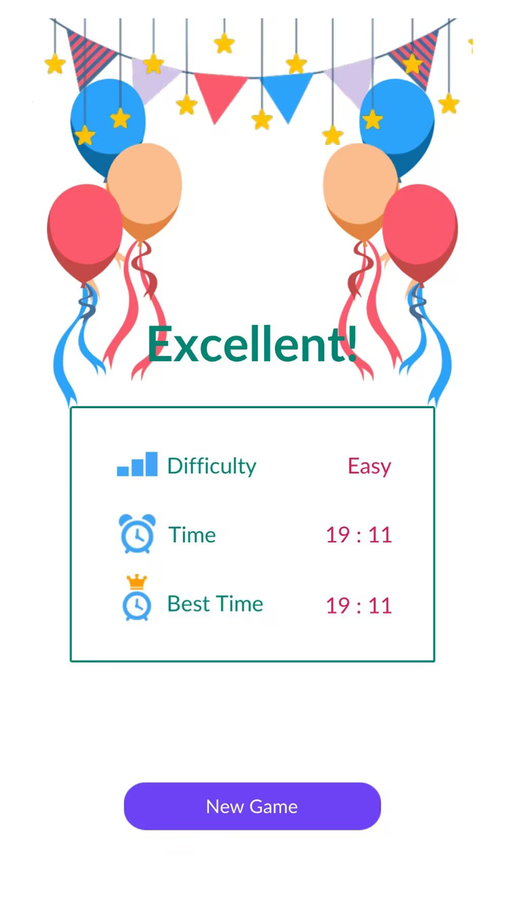 Play easier levels to challenge your brain, or try expert levels to give your mind a real workout.