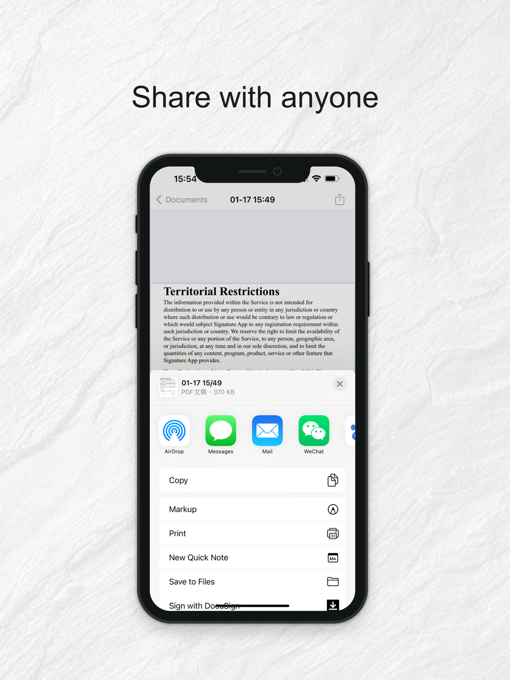 Upload and scan various documents anytime, anywhere, quickly add signatures and share them with others
