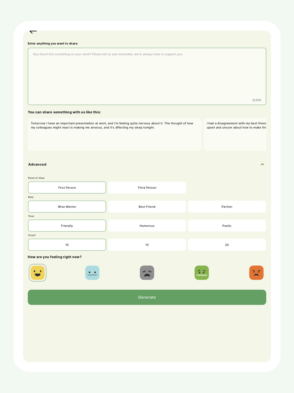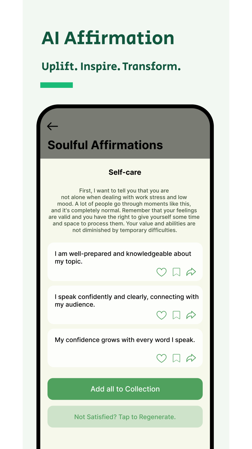 - **Personalized Affirmations**: Our AI understands your needs and crafts affirmations that resonate with your soul.