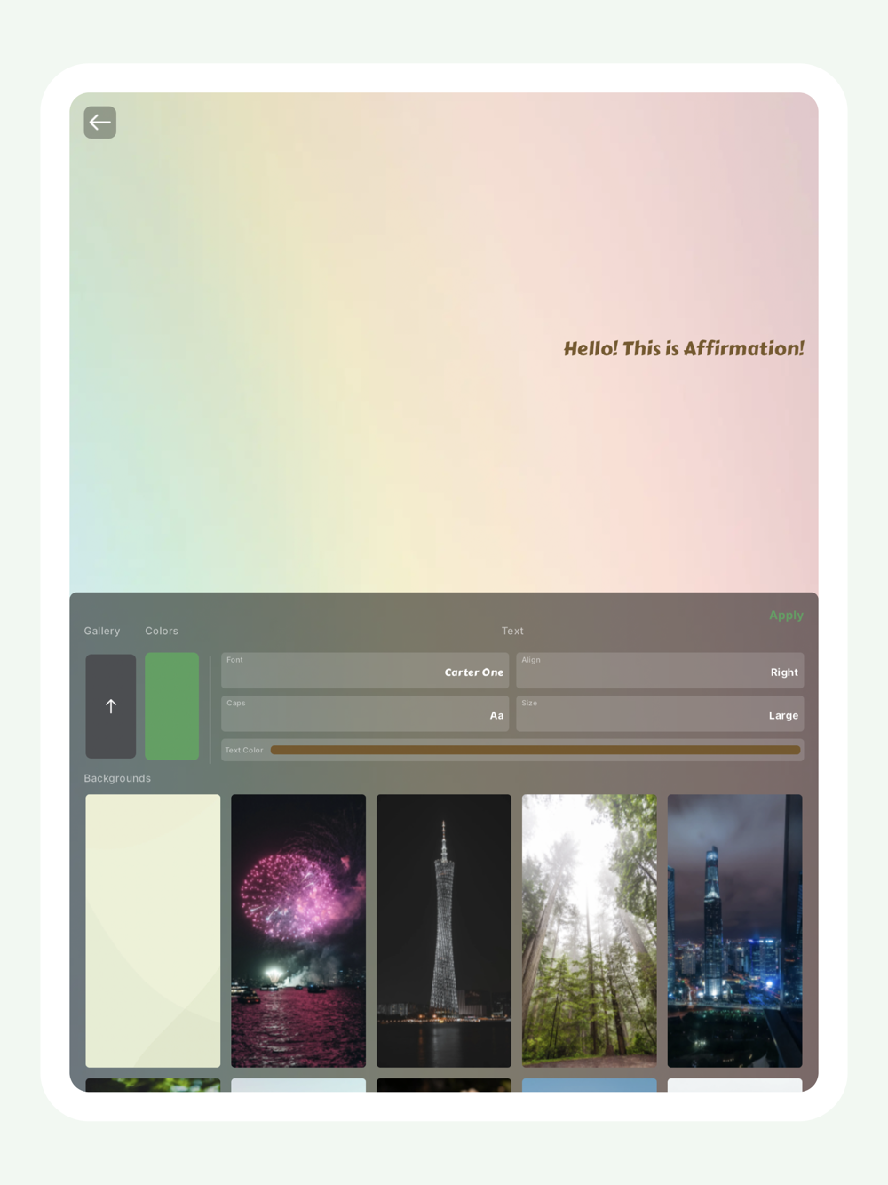 - **Customizable Themes**: Choose from a variety of themes to match your mood and style. Your affirmations, your way.