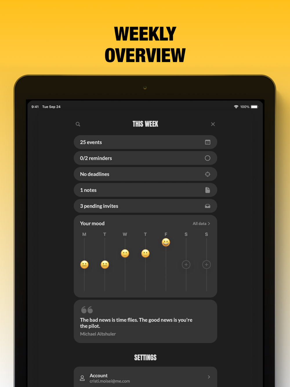 Your data is synced instantly across all your devices. It's fully encrypted and only you can read it. Events and Reminders are handled by EventKit, which is a framework from Apple, and this app is only given strict permissions to read and edit your events and reminders. The app does not copy them to any server or collect any information about your events and reminders. For more details please don’t hesitate to reach out or read the privacy policy.