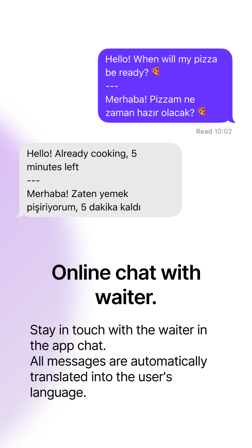 An application for restaurants with QR menus. Available in four languages. You can order by yourself. You can write to the waiter in your own language - they will receive a translation. The app's motto - no need to wait for the waiter anymore. You can pay by yourself and leave. Also, you can leave a review that only the owner will see!