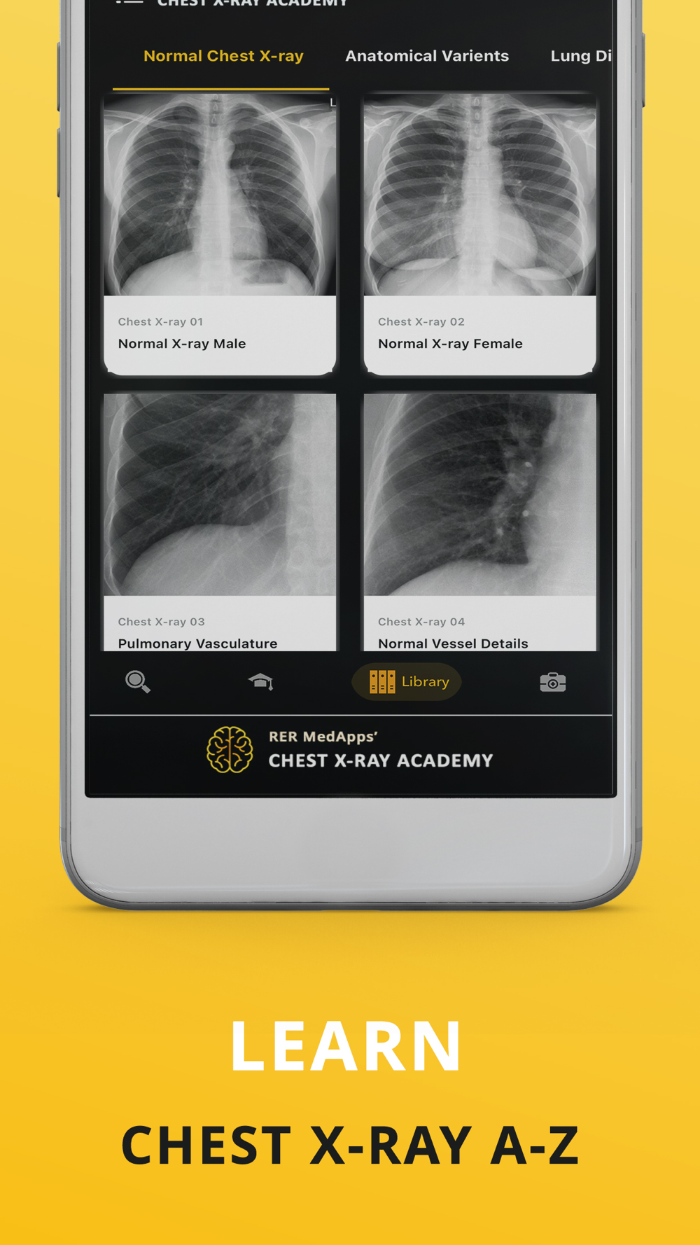 Explore an extensive collection of chest X-rays, each accompanied by detailed annotations and overlays, providing invaluable insights into anatomy, pathology, and differential diagnoses. From identifying subtle infiltrates to discerning complex pulmonary conditions, our app offers an immersive learning experience like no other.