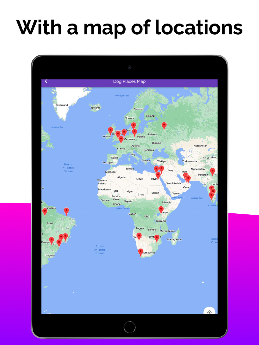 One of the most exciting features of our app is the map that shows you where dogs can be found around the world. This is perfect for anyone who wants to plan a dog spotting adventure!