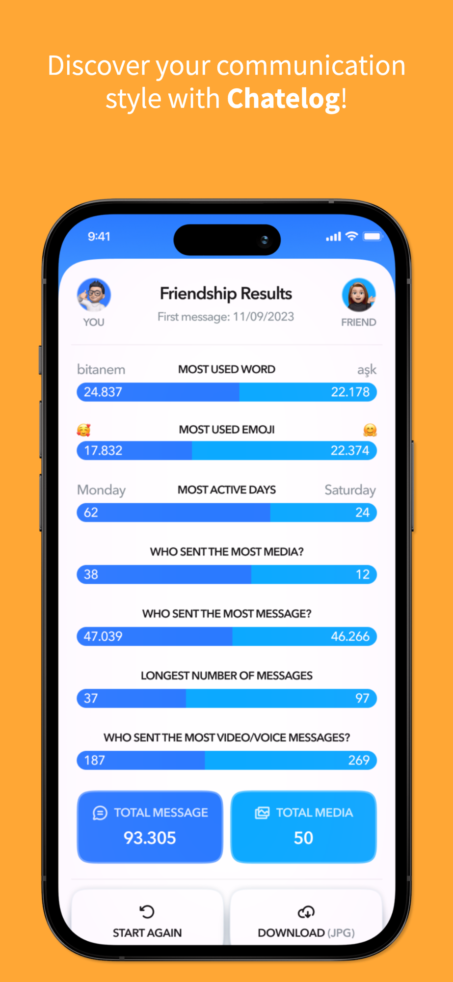 Chatelog turns your daily conversations into an exciting and meaningful exploration. Whether it's friendships or romantic relationships, dive deeper into your chats for more conscious and connected communication. Download now and unlock the hidden world of your conversations!