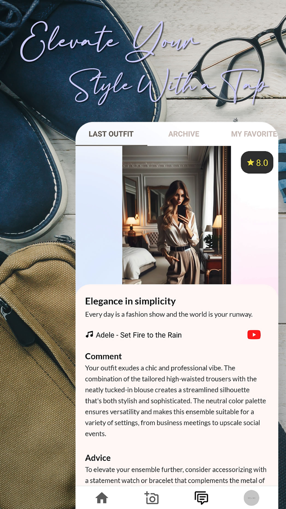 Dear valued fashion enthusiasts, we are thrilled to introduce you to a brand new experience to enhance your style and perfect your combinations: Stylish! Share photos of your outfits to receive feedback from our professional style advisors and elevate your fashion game. Additionally, easily access your past combinations, track your daily mood, and follow your favorite tunes. We're here to help you achieve the style you've always dreamed of and look perfect every day!