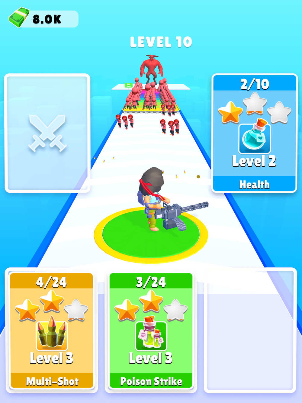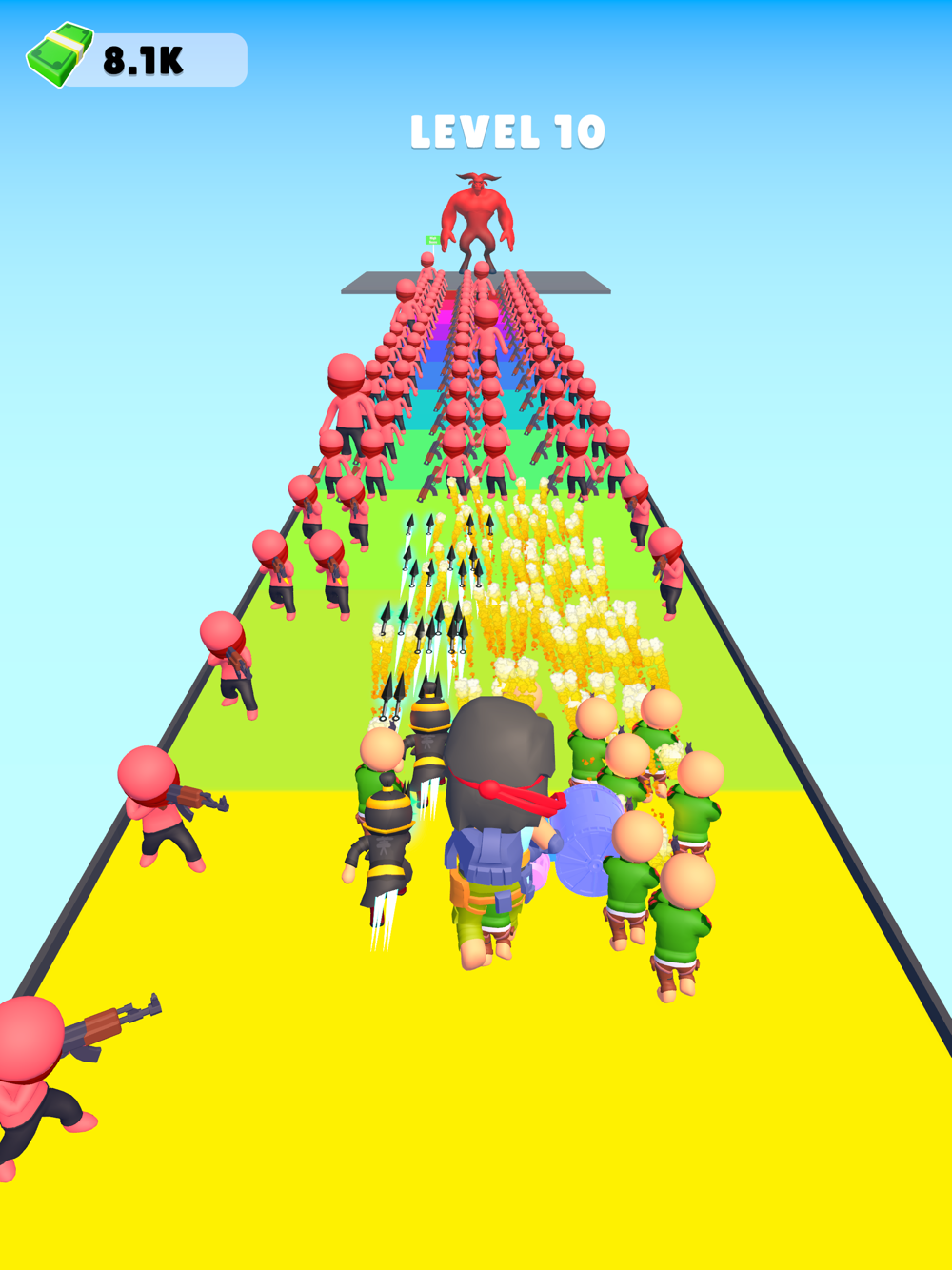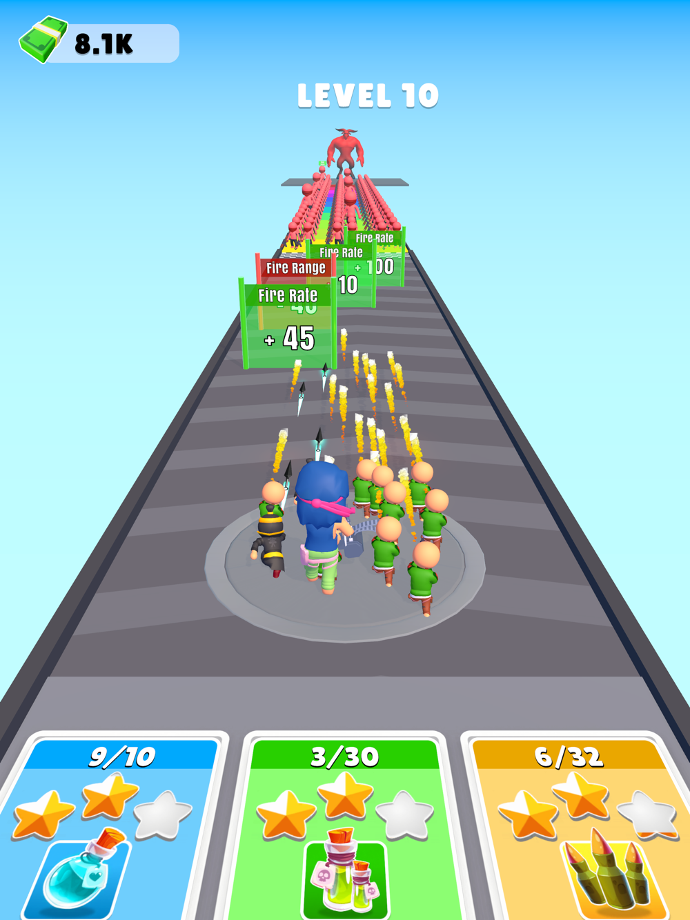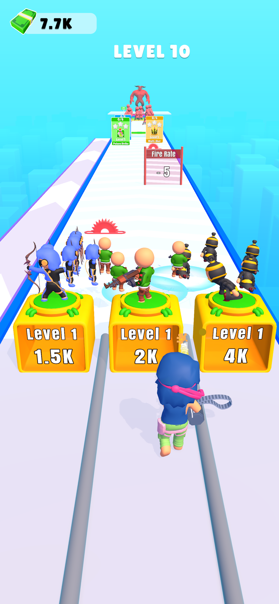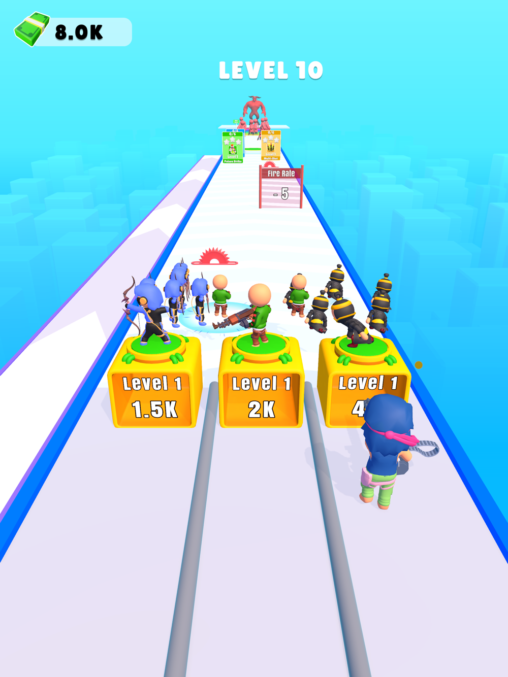 Run, shoot, and strategise in this hyper-casual endless runner! Make critical decisions to boost fire range and rate. Blast pillars spawning troops like archers and ninjas, building an army for an epic showdown. Face hordes and massive bosses, collecting coins for upgrades. How far can you go in this intense, action-packed challenge?