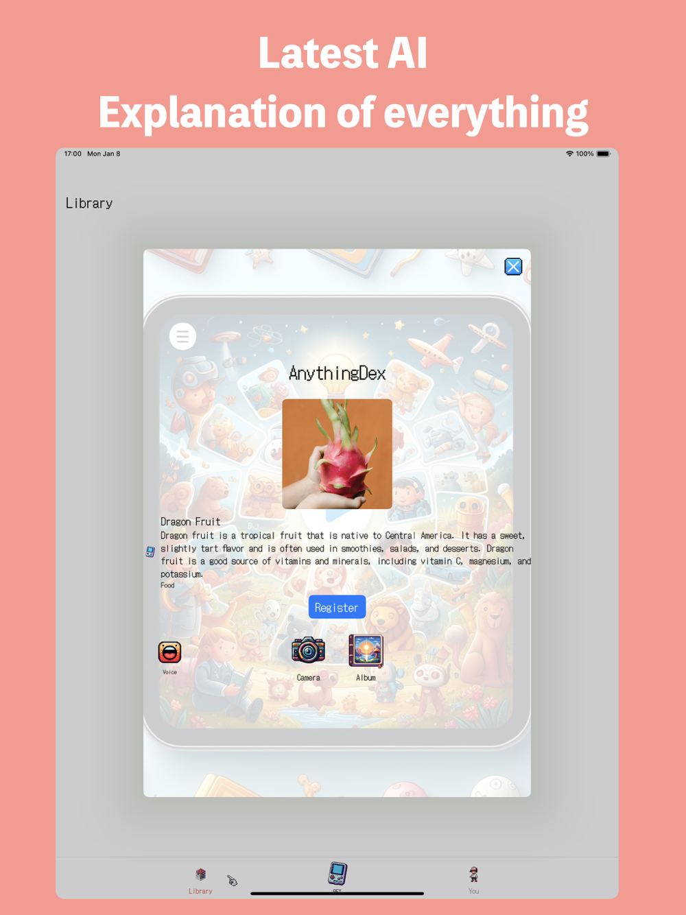 なんでも、図鑑、オリジナル、AI、Gemini、ジェミニ、ジェミナイ、作成、知育、写真、画像、生成AI、認識、ポケモン、ChatGPT、人工知能、自動、子供、こども、勉強、学習、AnythingDex