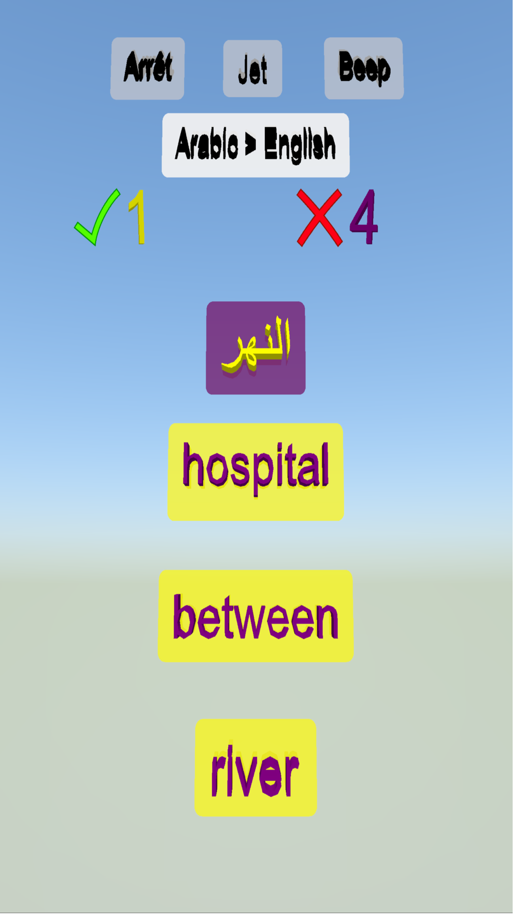 You will see a word on the top and answers below the word. You will see green border if you select the correct answer. You can change the game as English to Arabic and Arabic to English. You can increase your points with correct answers.