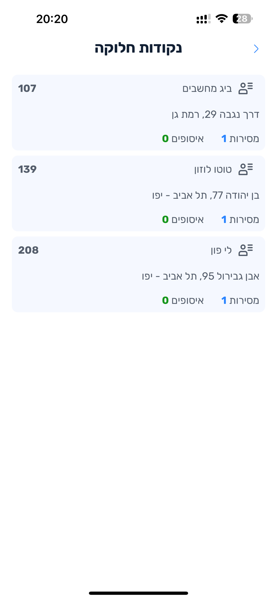 אפליקציה עבור ניהול משלוחי HFD ונקודות חלוקה