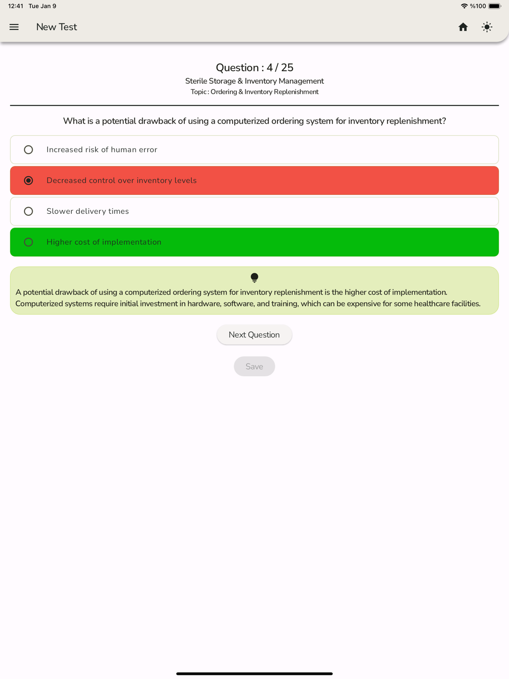 Our AI-driven learning platform boasts over 4750 questions meticulously curated and categorized to cover the breadth of CRCST training. Dive into targeted sections and topics directly aligned with HSPA standards, ensuring a thorough revision of key concepts.