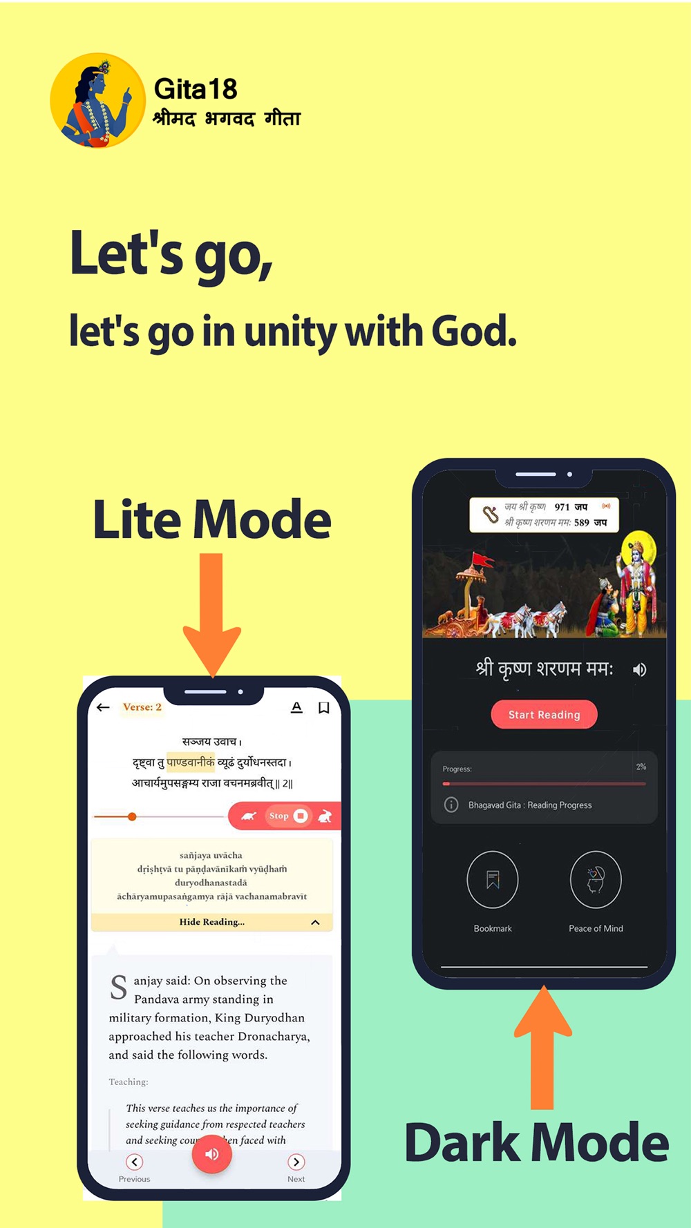 Discover the Gita18 app where ancient wisdom meets technology. It helps you feel closer to the teachings of the Bhagavad Gita in an easy and modern way. Start your journey today, and let's make each chant a step towards a happier and more connected world.