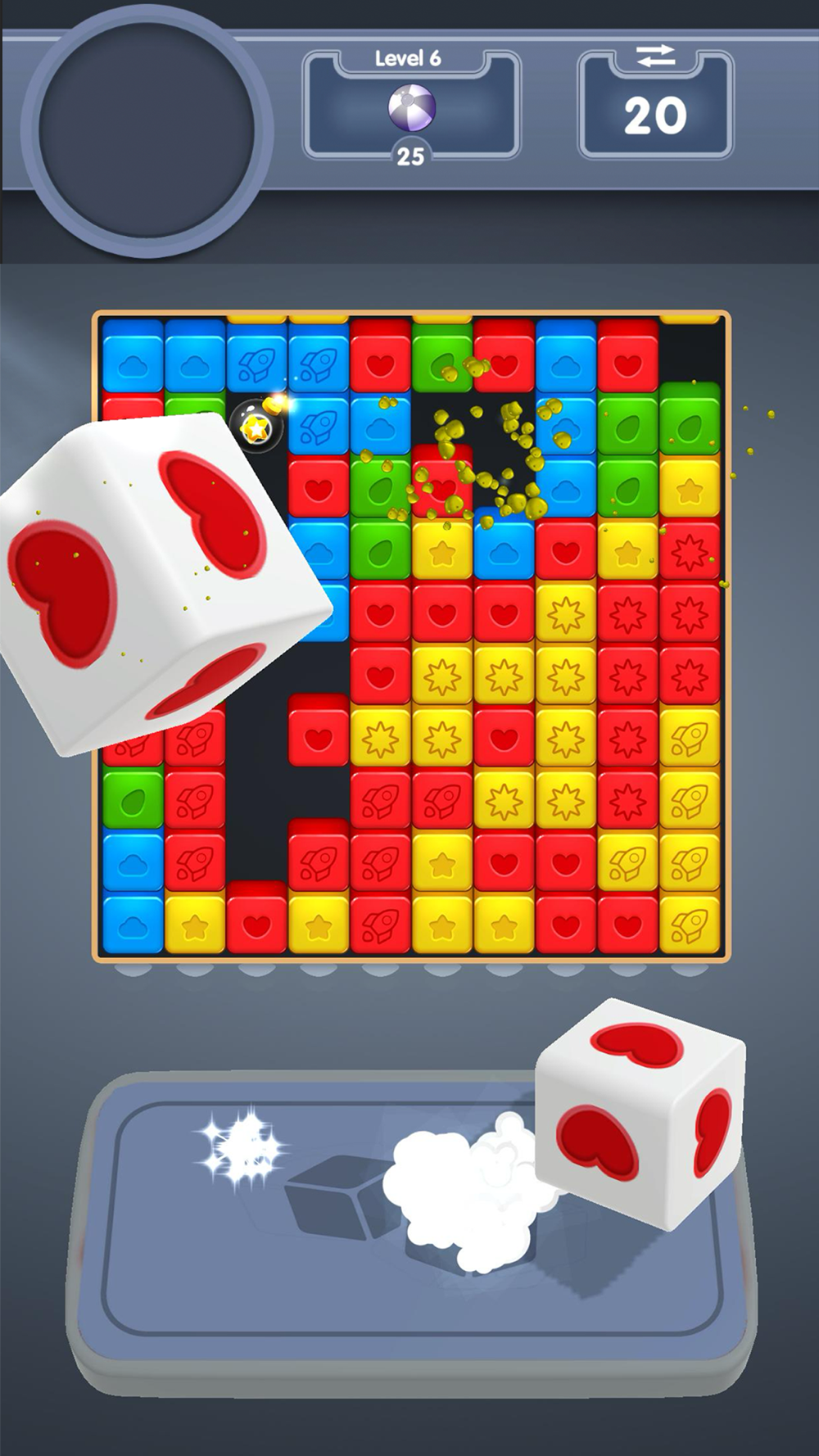 Introducing Dice and Blast, the captivating Dice throwing game! Throw Dices, Choose which dice to use and Blast all pieces.