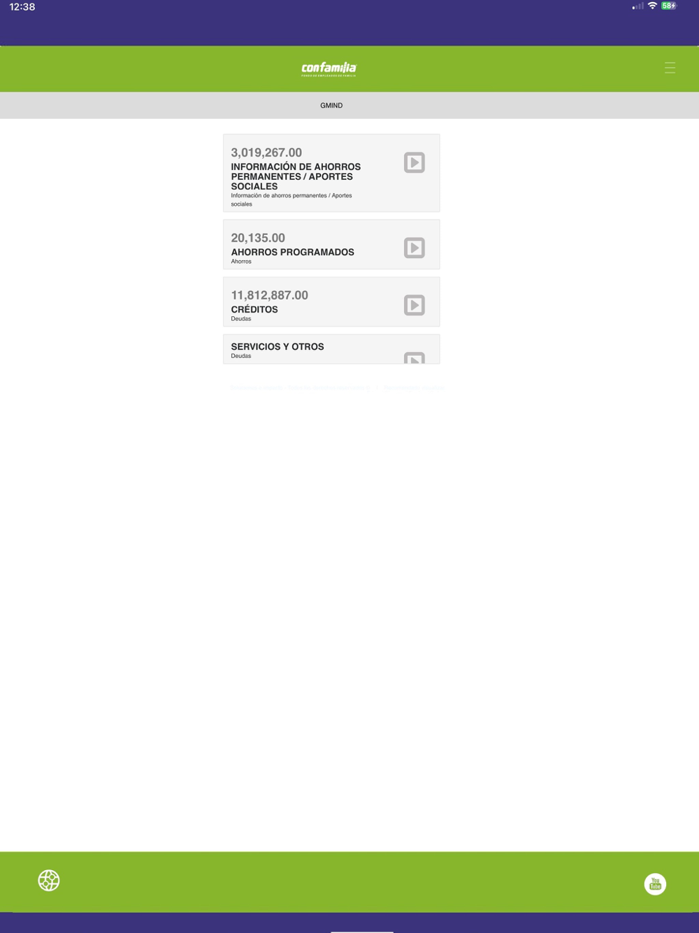 La aplicación para dispositivos móviles Confamilia permite a cualquier persona ver la web de Confamilia. Permite a los vinculados consultar sus estados de cuenta, su extracto de movimientos, hacer solicitudes de crédito, pedir auxilios, encontrar puntos de atención, abrir cuentas de ahorro, consultar boletines, participar en procesos de elecciones y votaciones, pagar sus productos y transferir recursos entre sus mismas cuentas